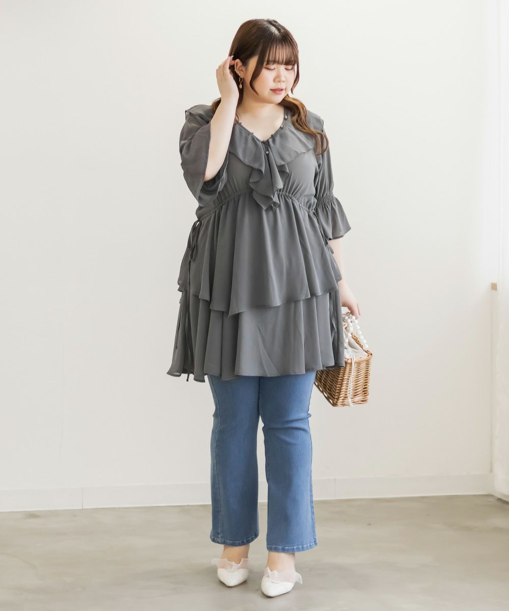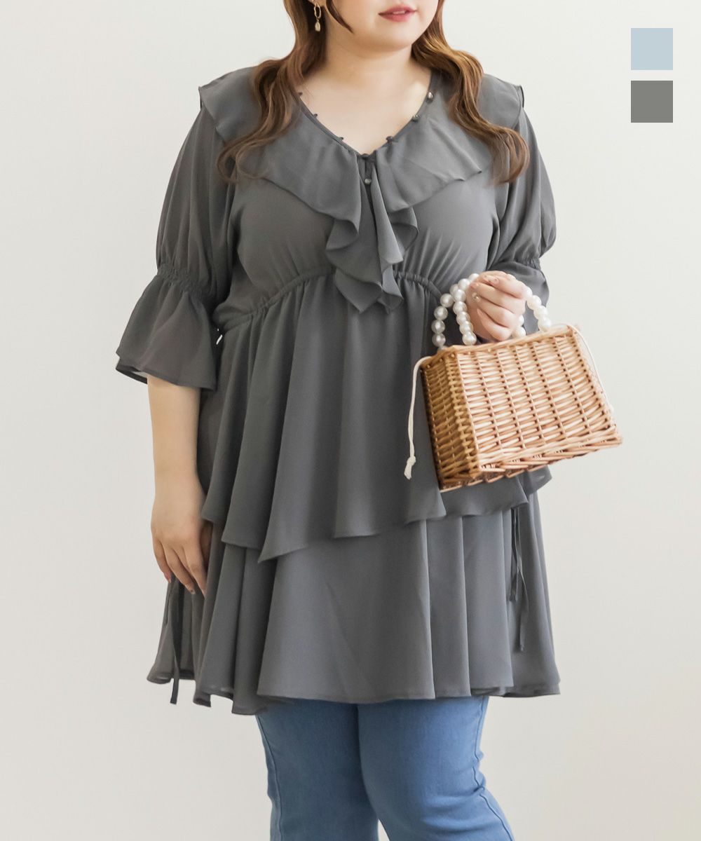 他の画像を見る クレット 大きいサイズ プラスサイズ チュニックワンピース シャツ トップス ミニワンピ ティアード 透け CLETTEオリジナル★シアーフリルチュニックブラウス 2025年5月下旬販売価格 ¥ 6,930 ↓ ¥ 4,950 税込 詳細を見る お気に入りに登録する