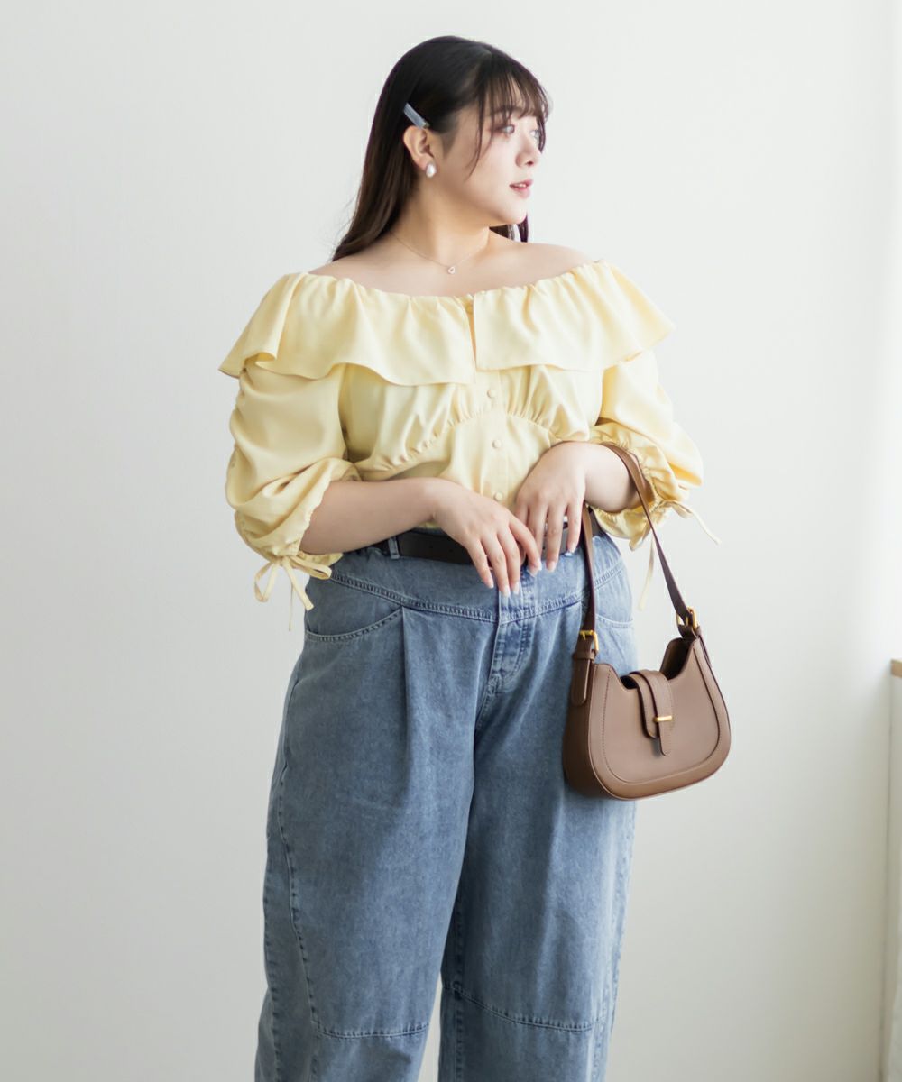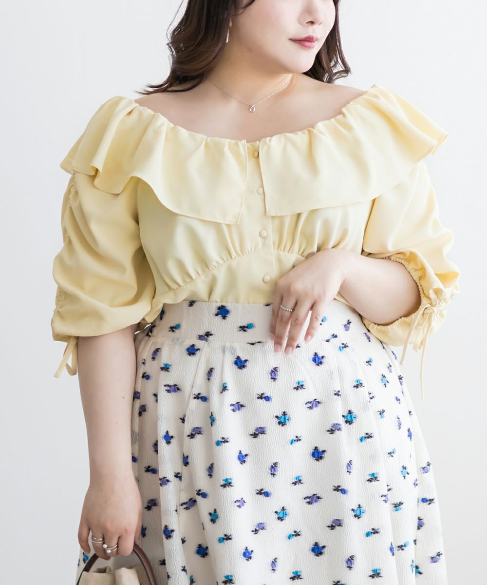 他の画像を見る プラスサイズ 大きいサイズ クレット リボン ドロスト 袖コンシャス 5分袖 6分袖 半袖 フリル衿オフショルブラウス 2025年6月上旬販売価格 ¥ 4,290 ↓ ¥ 1,980 税込 詳細を見る お気に入りに登録する