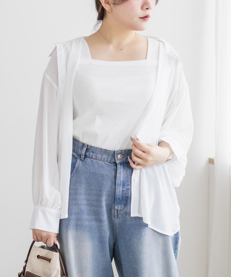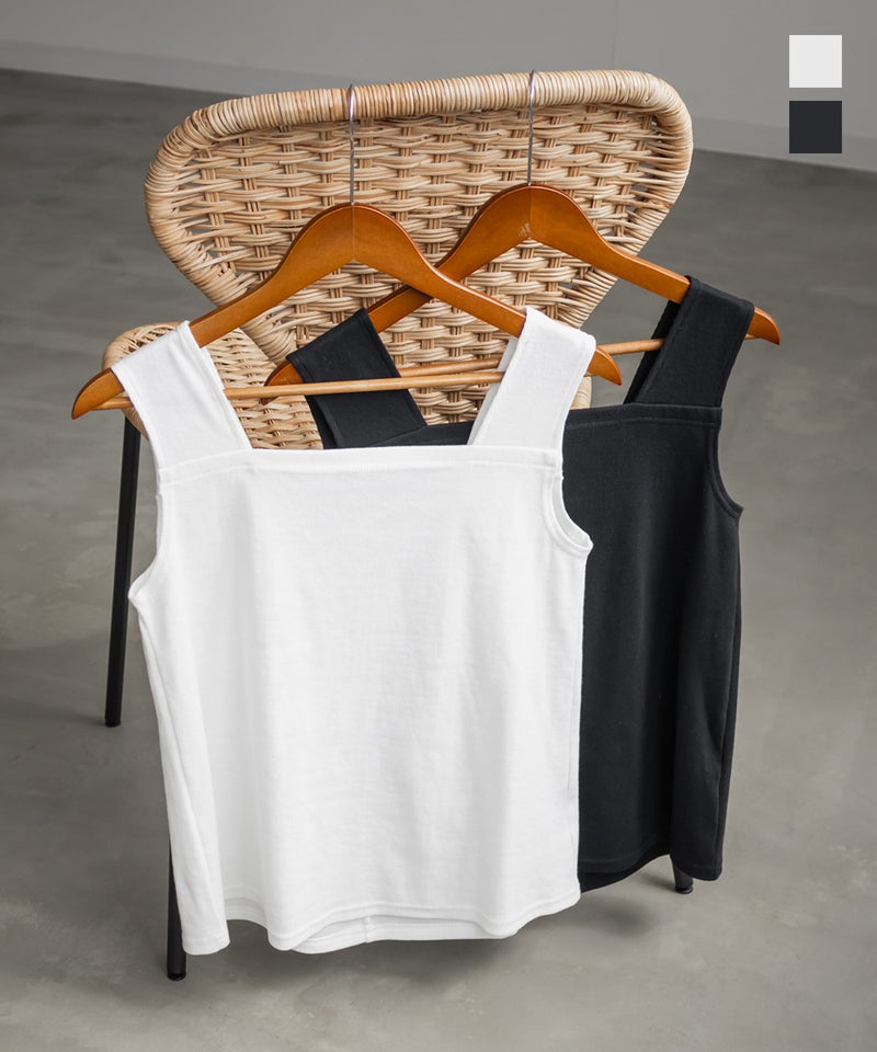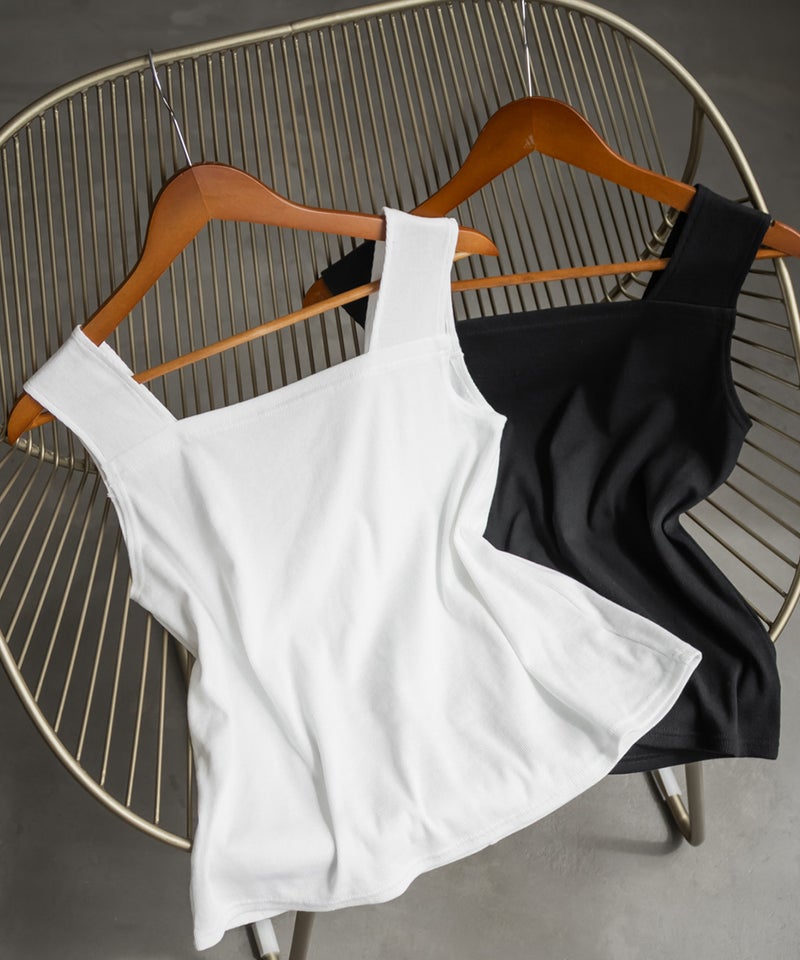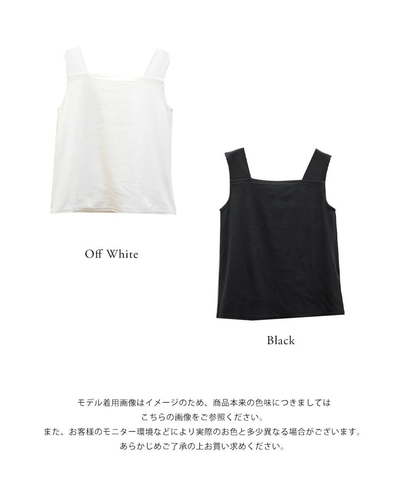 【design】スクエアネックで、胸元をすっきりと見せてくれるタンクトップ。ブラ紐も気になりにくい、安心感のあるデザイン。伸縮性のある素材に後ろはゴム仕様。締めつけ感のないストレスフリーな着心地に仕上げています。【material】伸縮性のあるカットソー素材。【styling】インナーとしても、上からさらっとシャツを羽織って見せるトップスとしても使える着回し力抜群のタンクトップ。多色買いしたくなる優秀アイテム。