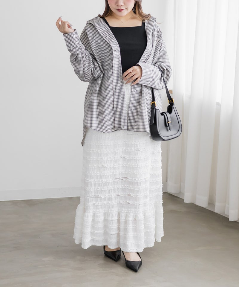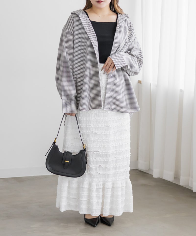 LLを着てぴったりサイズでした。後ろゴム入りで着脱が楽ちんでバストも窮屈感のないストレスフリーな着心地です。シャツやカーデをさらっとと羽織ったりシアーやレースのトップスのインナーに使ったり、1枚持っておくだけでインナーの悩みを解決してくれる便利なタンクトップです!どんなテイストのスタイリングにも、お仕事やお出かけにもシーンを選ばず使えるので色違いでほしくなるアイテムです◎