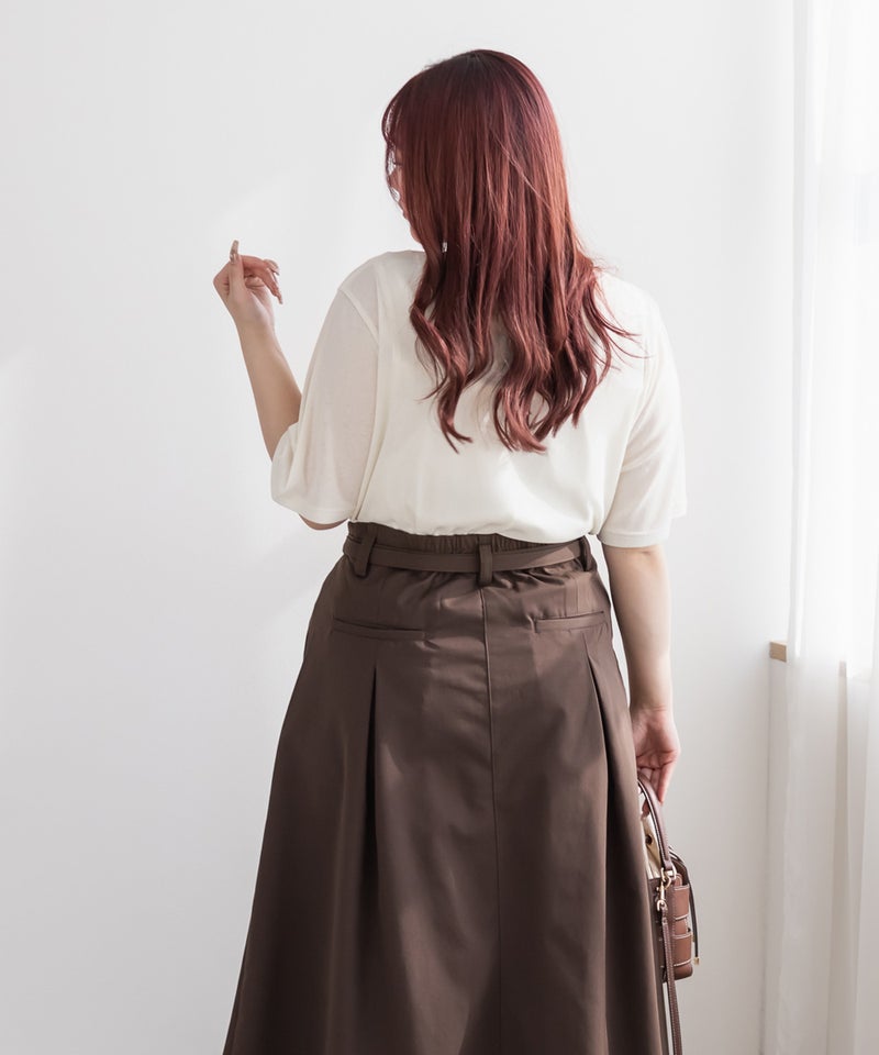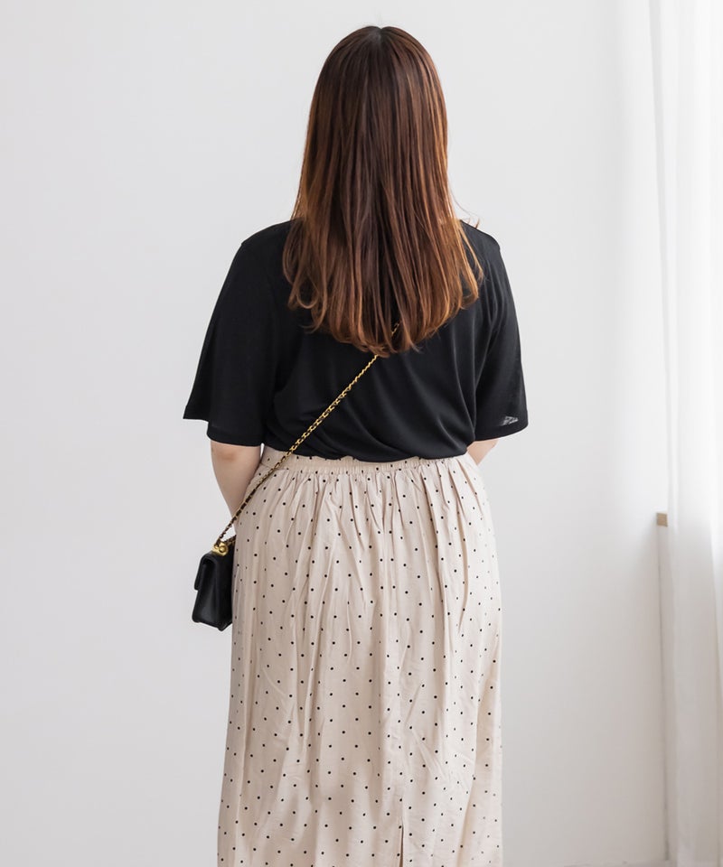 3Lサイズで程よくゆとりがあり、リラックス感のある着心地でした◎ゆとりを持たせたシルエットで、ピタっとしないので涼しいし、ボディラインも拾いにくいです!透け感が今っぽく、1枚でももちろんレイヤードに取り入れるだけでコーデがぐっとおしゃれ見えします!着回しの幅が広く、1枚あると便利なアイテムです!