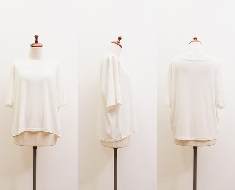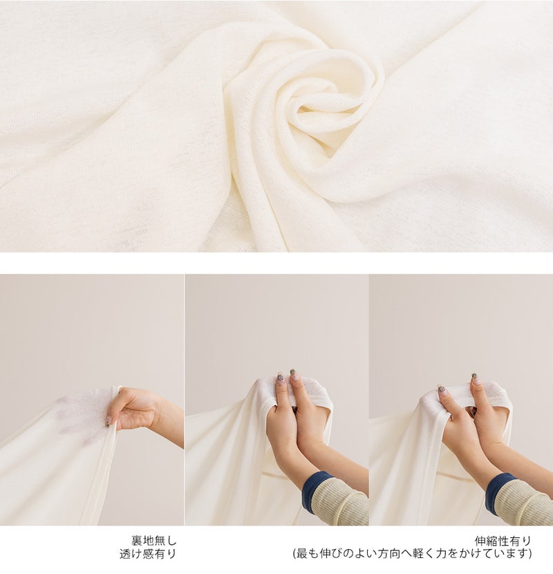 さらりとした清涼感のある肌触りのカットソー素材。伸縮性があり着心地らくちんで暑い時期も快適にすごせる。