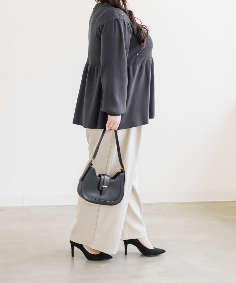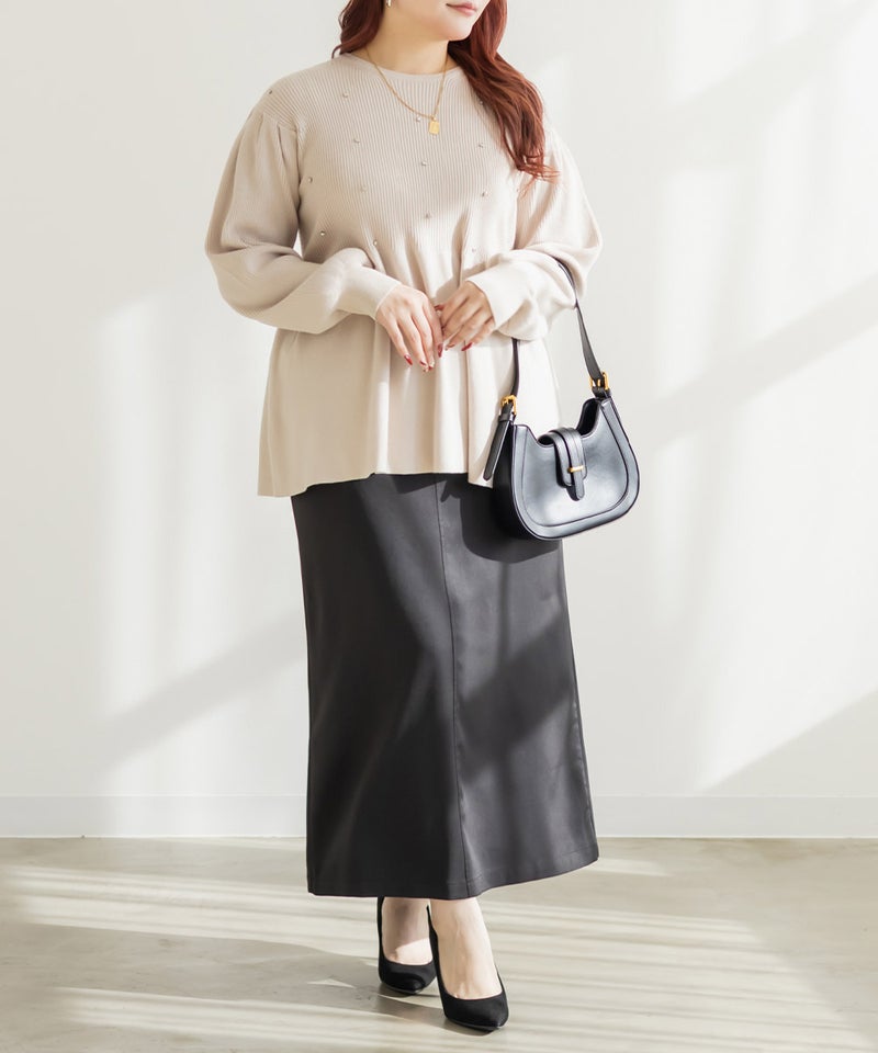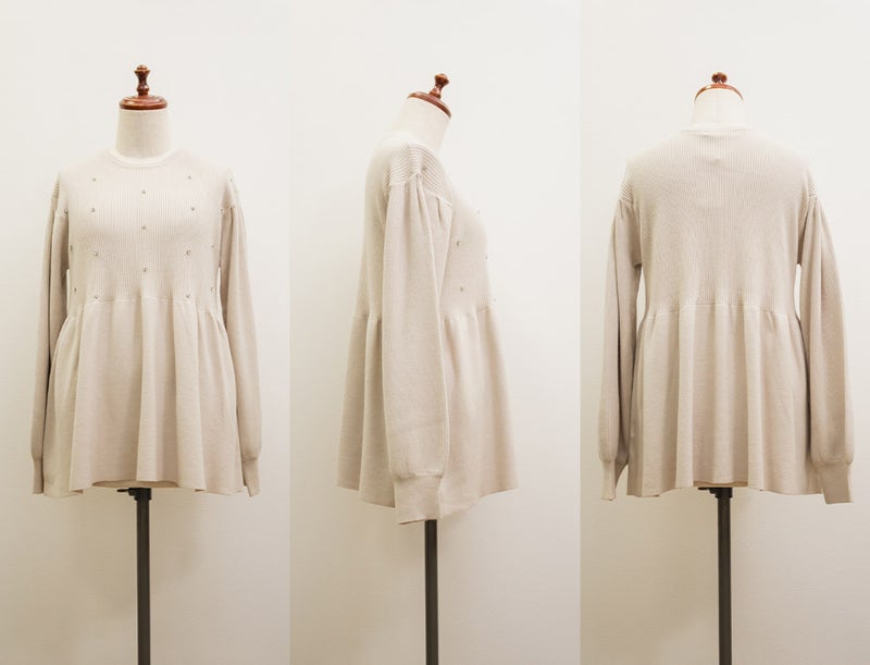 3Lサイズを着用してちょうどいいサイズ感でした。やわらかいリブニットで着心地はらくちんでした!シルエットが綺麗で、女性らしい雰囲気になれる1枚です♪ペプラムシルエットなのでお腹周りもカバーしてくれるのが嬉しい!普段使いはもちろん、キレイめにも着られるのでオフィスカジュアルにもおすすめです!