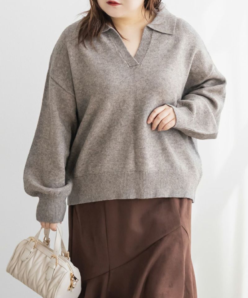 3Lサイズを着用してゆとりのあるサイズ感でした。ゆるっと着ても可愛かったです◎スキッパー襟が小顔効果になって顔回りをすっきりした印象に見せてくれます。詰まりすぎてないネックが抜け感のあるスタイリングになります。やわらかくてふんわりしたニットなので女性らしいフェミニンな雰囲気にもピッタリです!色味もシンプルなのでどんなボトムにも相性抜群!