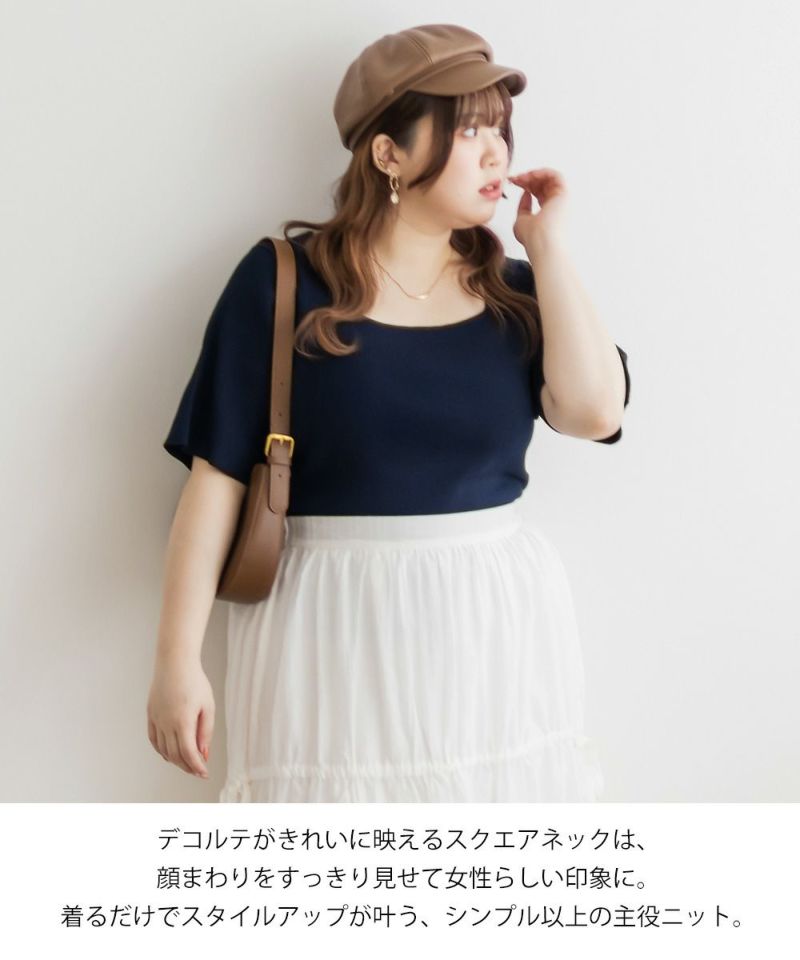 3Lサイズでぴったりすぎず、身幅・腕まわりにも余裕があって窮屈感なし♪伸縮性が良いサマーニットでらくちんでした!スクエアネックが顔まわりをすっきり見せてくれて、抜け感のある印象にしてくれます。リブ素材なのでボディラインを拾いすぎず、程よくフィットして着心地も抜群です!インでもアウトでも着やすい丈感で、スカートにもパンツにも合わせやすい万能アイテムです。1枚ではもちろん、ジャンスカやサロペットのインナーとしても大活躍しそう!シンプルなデザインなのでオンオフ問わず着回しが効きます!