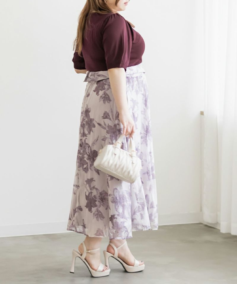 3Lサイズを着用しましたが、ボディラインを拾いすぎず、ちょうどいい着心地でした◎二の腕まわりもフィットしすぎず、さらっとしたサマーニット素材なので、真夏でも快適に過ごせそう!デコルテ部分の程よい肌見せが上品で、顔まわりもすっきり見える印象です。きれいめにもカジュアルにも着回せるので、ワードローブの主力アイテムになりそうです♪