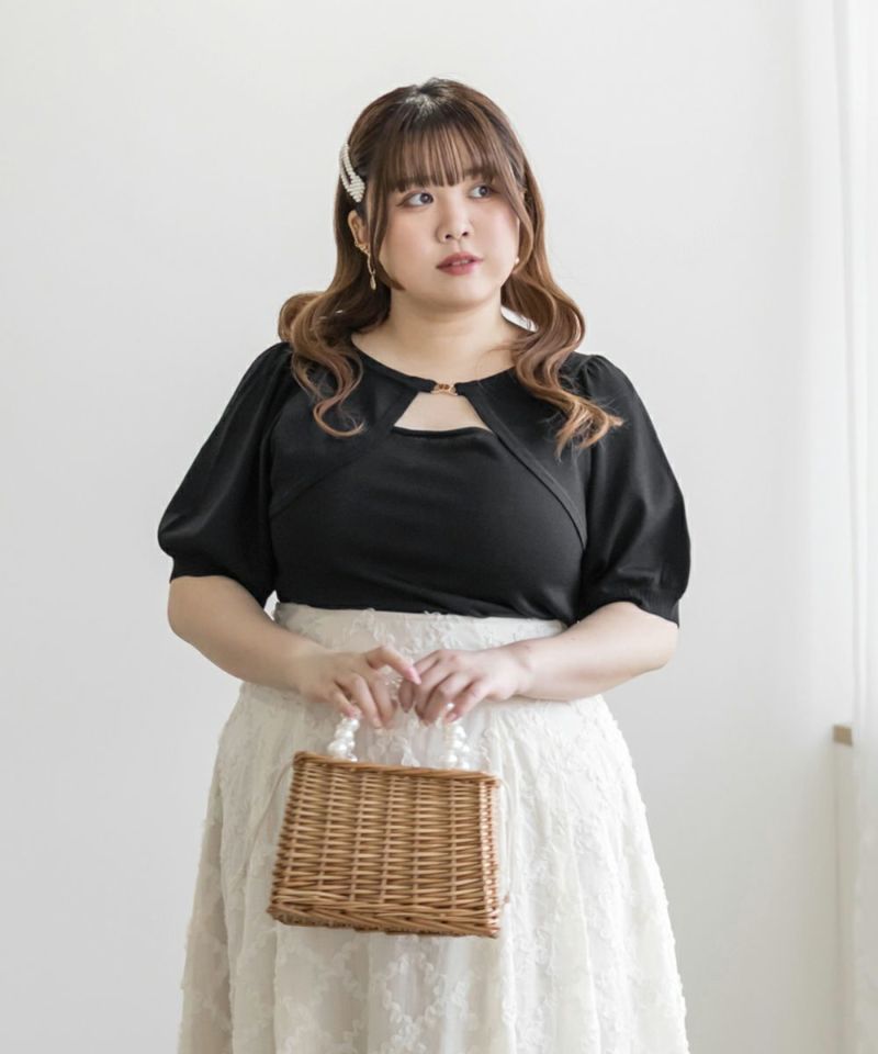 クレット プラスサイズ 大きいサイズ LL 3L 4L プルオーバー トップス フェミニン 肌見せ CLETTEオリジナル★デコルテデザインサマーニット