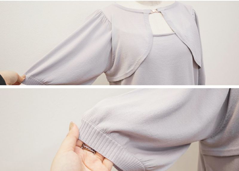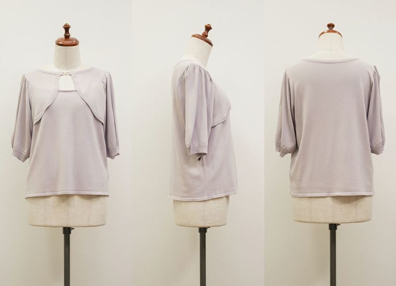 色味が爽やかでブルベの肌色には良いかと。ただ胸元の金具は固定力が弱く、肩を開く度に取れてしまうのが残念です。まぁ閉めなくてもアンサンブルのボレロを着た感じになるのでそれなりに可愛いですが。 素材感としては真夏にも活躍しそうで、買って良かったです。(金具はジェルネイルのトップコートを塗って固定すれば外れません。)