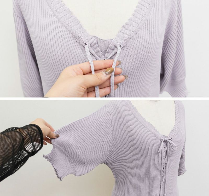 CLETTEオリジナル★レースアップデザイン半袖ニット CLETTEオリジナル★レースアップデザイン半袖ニット
