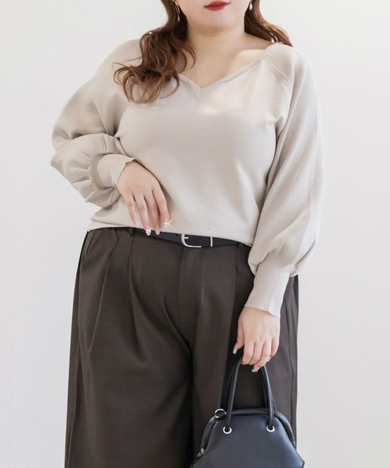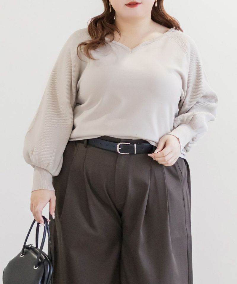 3Lを着て、全体的にちょうどいい着用感で、ニットなので伸びがよく窮屈さは感じませんでした。ハートネックがデコルテをきれいに見せてくれて、顔まわりに自然な抜け感が出るのがポイントです。ウエストがほんのりシェイプされているので、アウトで着てもシルエットがだらっとせず、すっきり着られました◎