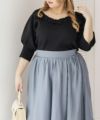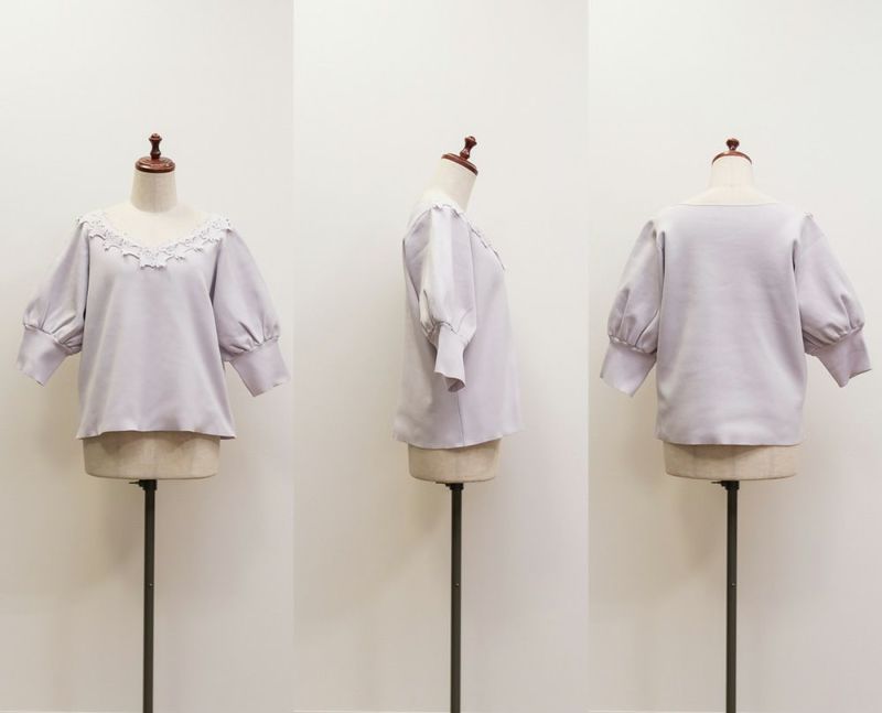 クレット 大きいサイズ 花 アイレットレース スポンジ スポンディッシュ プルオーバー サマーニット CLETTEオリジナル★レース使い6分袖ニット