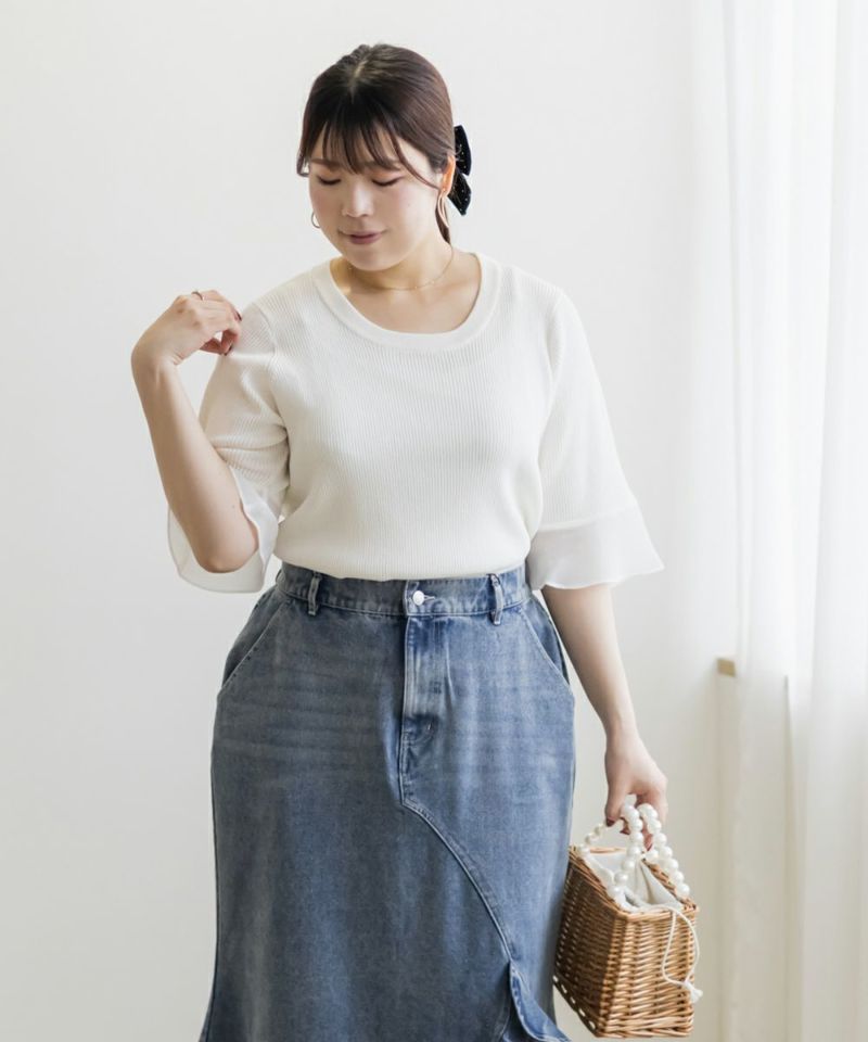 3Lを着てちょうどいいサイズでした。さらりとした夏向けのリブニットで、着ていても暑くない素材です◎伸縮性がしっかりあるのでストレスフリーな着心地で、顔回りも二の腕もすっきりと見えるデザインなのも嬉しいです!ボーダーはカジュアルになりがちな印象もあるけど、このニットは上品に、女性らしく着こなせました♪無地もあるので、好みのデザイン・雰囲気で選んでみてください◎パンツ、スカート、ワンピース、アイテムどんなアイテムともコーディネートしやすい便利なトップスです!