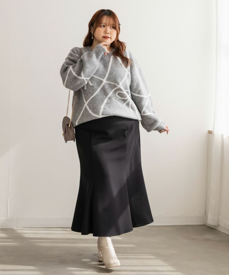 3Lサイズを着用してちょうどいいサイズでいつも通りのサイズ選びで問題なさそうです!もっちりしたニットでやわらかくらくちんな着心地でした。リボンをあしらったデザインで、メリハリのある印象です。デザインのあるニットなので、シンプルなボトムとも相性抜群!短すぎない程よい丈感なのでタックインせず着用出来るのも魅力です♪これからの季節たくさん着たい1枚です!