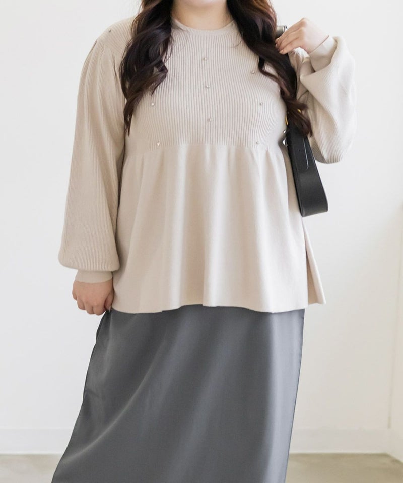 3Lサイズを着用してちょうどいいサイズ感でした。やわらかいリブニットで着心地はらくちんでした!シルエットが綺麗で、女性らしい雰囲気になれる1枚です♪ペプラムシルエットなのでお腹周りもカバーしてくれるのが嬉しい!普段使いはもちろん、キレイめにも着られるのでオフィスカジュアルにもおすすめです!