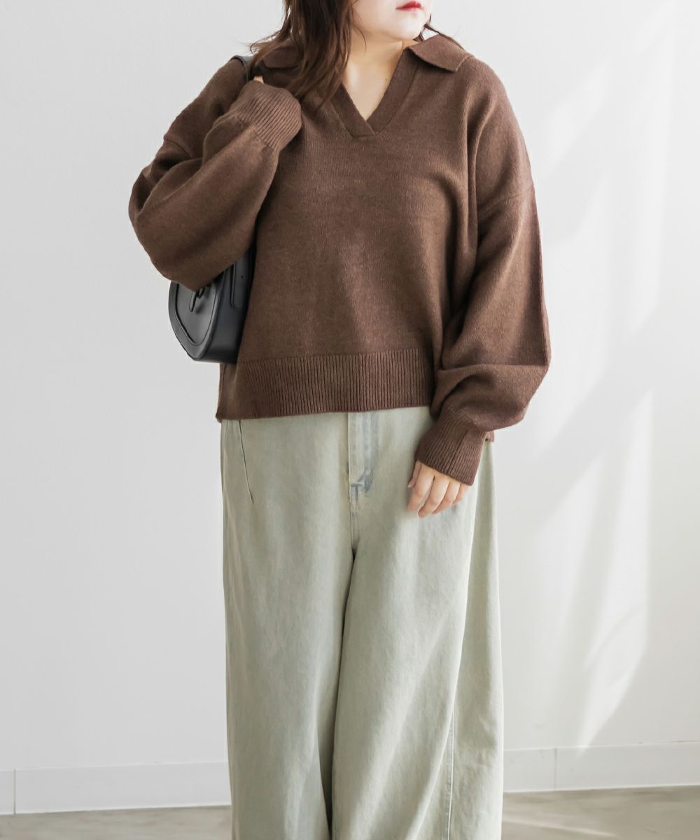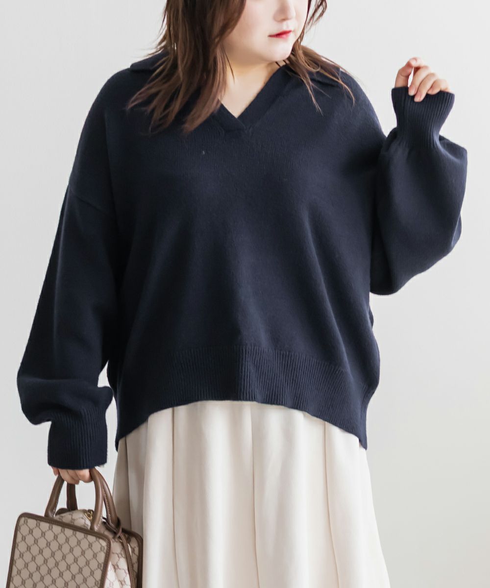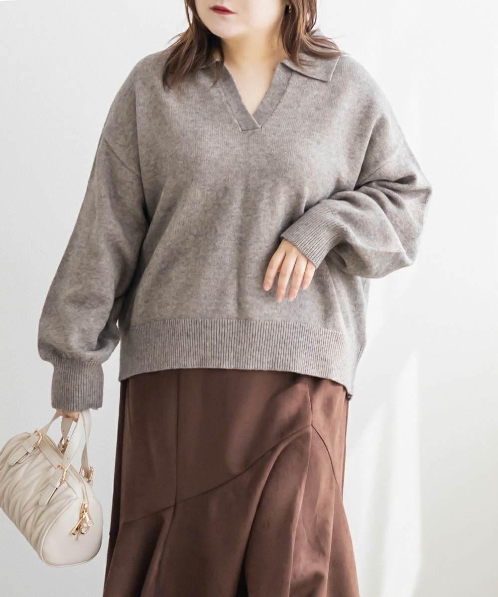3Lサイズを着用してゆとりのあるサイズ感でした。ゆるっと着ても可愛かったです◎スキッパー襟が小顔効果になって顔回りをすっきりした印象に見せてくれます。詰まりすぎてないネックが抜け感のあるスタイリングになります。やわらかくてふんわりしたニットなので女性らしいフェミニンな雰囲気にもピッタリです!色味もシンプルなのでどんなボトムにも相性抜群!