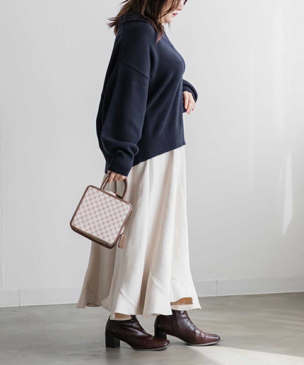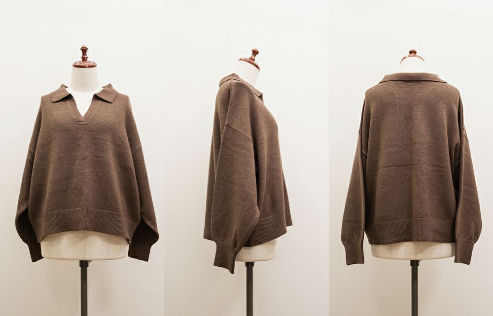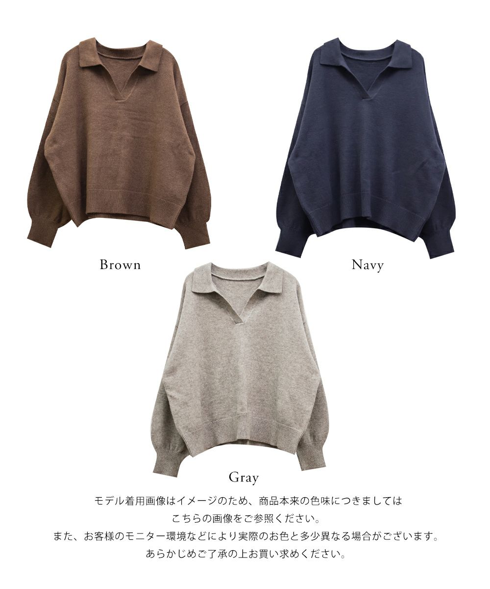3Lサイズを着用してゆとりのあるサイズ感でした。ゆるっと着ても可愛かったです◎スキッパー襟が小顔効果になって顔回りをすっきりした印象に見せてくれます。詰まりすぎてないネックが抜け感のあるスタイリングになります。やわらかくてふんわりしたニットなので女性らしいフェミニンな雰囲気にもピッタリです!色味もシンプルなのでどんなボトムにも相性抜群!