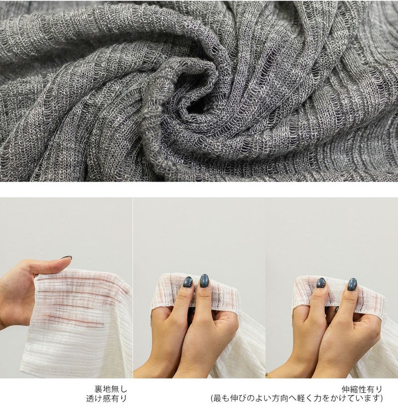 生地感 程よく透け感のある柔らかな薄手のニット素材です。