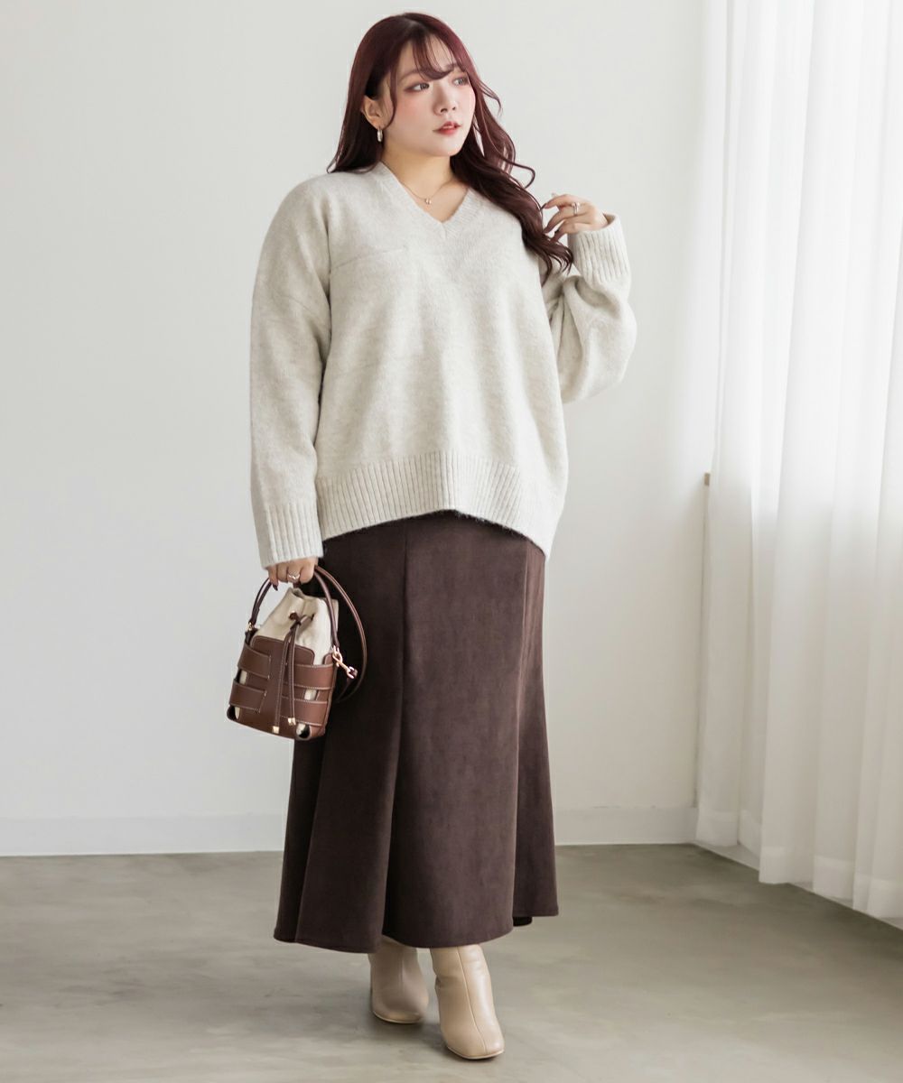 3Lサイズを着用して、ちょうどいいサイズ感でした。伸縮性のあるニットで着心地もらくちんでした◎長めの着丈がトップスインしなくても着用できるので、腰回りが気になる方にもお勧めです!すっきりしたボトムと合わせるのがおすすめで、パンツやマーメイドスカートなどにもコーデしやすいです♪深めに開いたネックラインもデコルテが綺麗にみえます!