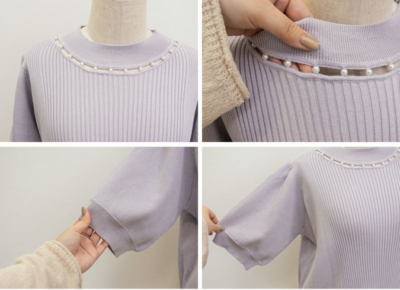 3Lサイズを着ていつも通りのサイズ感でした。首元にあしらわれたパールが華やかさをプラスしてくれて、アクセサリーいらずで一気に上品な印象に♪サマーニット素材なので身体にほどよくフィットして、着心地も抜群です◎チクチク感のない柔らかなニット生地で、長時間着ていても快適でした!袖口や裾もしっかりとしたつくりで、上品見えして、オンオフ着回ししやすいのも嬉しいポイント。着用感はちょうどよく、ジャケットやジャンスカのインナーとしても使いやすい万能アイテムです。