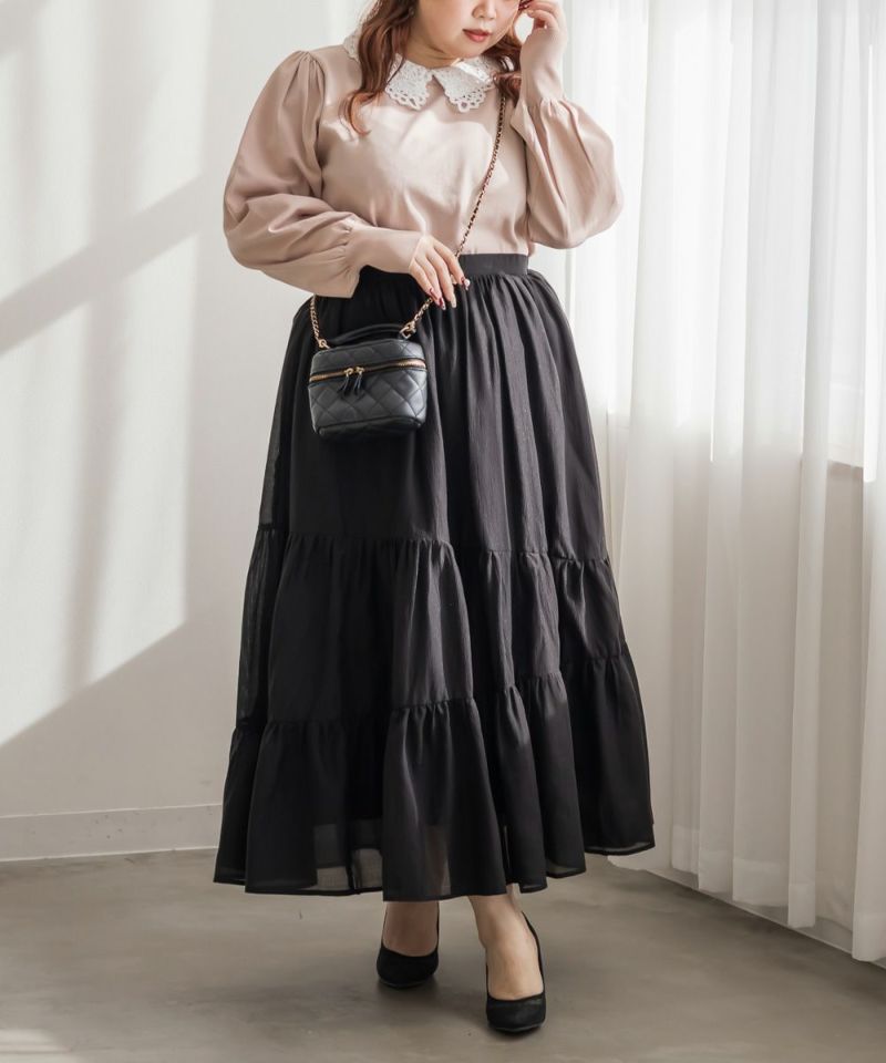 シンプルなデザインだからカジュアルなパンツ合わせも、スカートに裾インしたコーデも、綺麗めフェミニンな着こなしに。高感度を高めにまとめたい、きちんと感が欲しいシーンなどにもお勧めです。