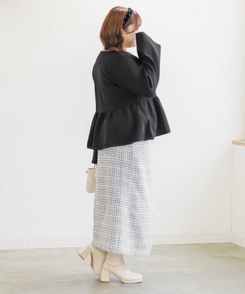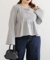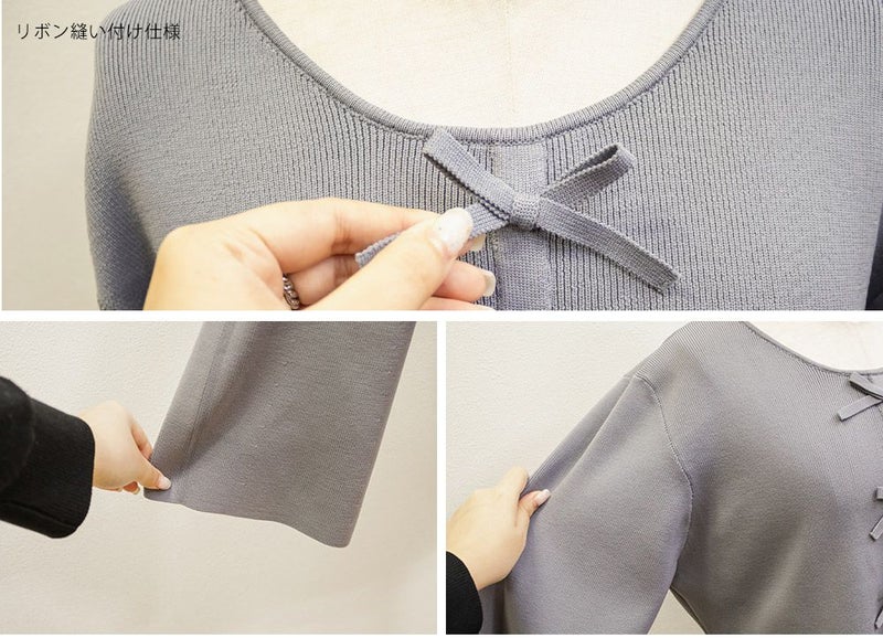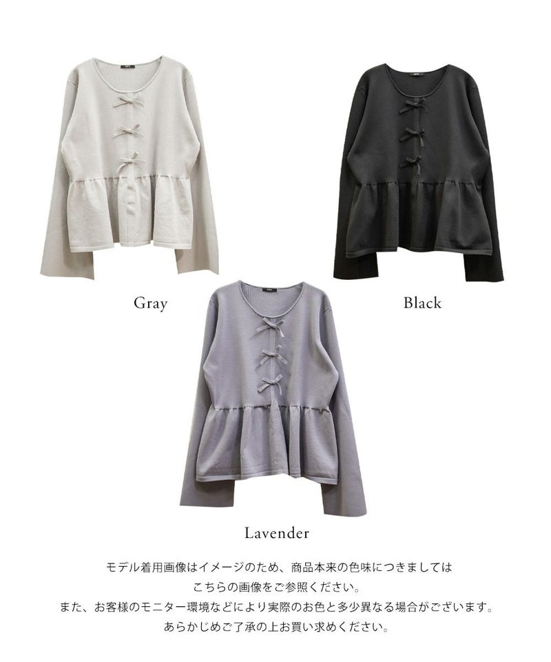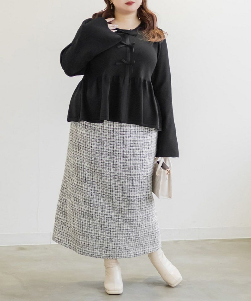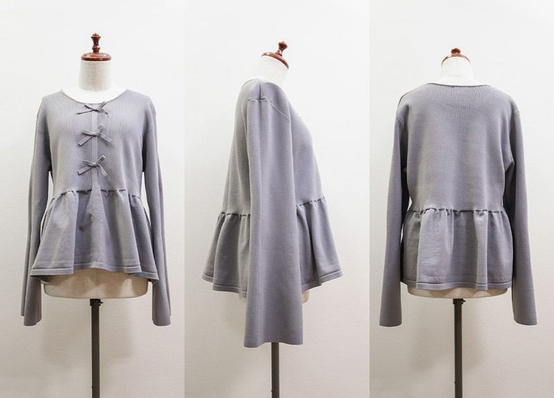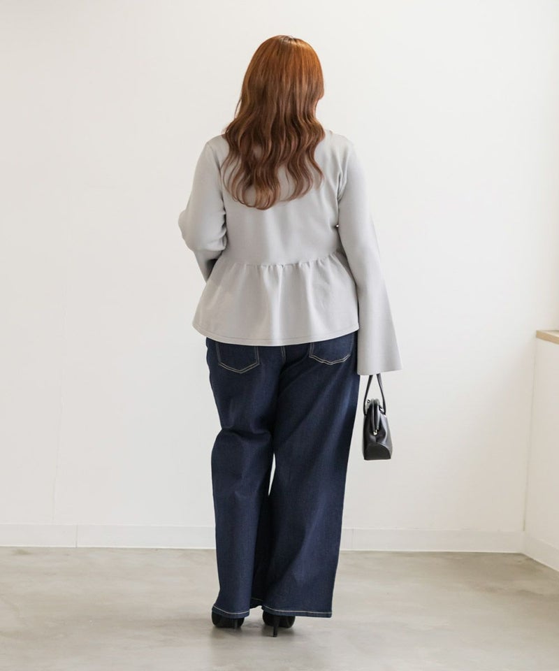 3Lを着てちょうどいいサイズでした。楽ちんな着心地でゆとりはあるのに、ペプラムシルエットで着やせができます◎軽いスポンジニットなので伸びも良くストレス無く着られました♪すっきりおしゃれにまとまる大人っぽいデザインで、フロントのリボンがさりげなくフェミニンな要素をプラスしてくれます!リボンは共地なので主張しすぎないのが嬉しいです。長めのフレアスリーブなので腕が綺麗に見えるのもポイント高いです!デニムやカジュアルなボトムと合わせてもフェミニンにまとまります!