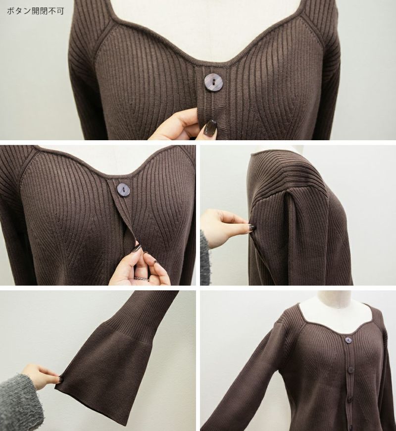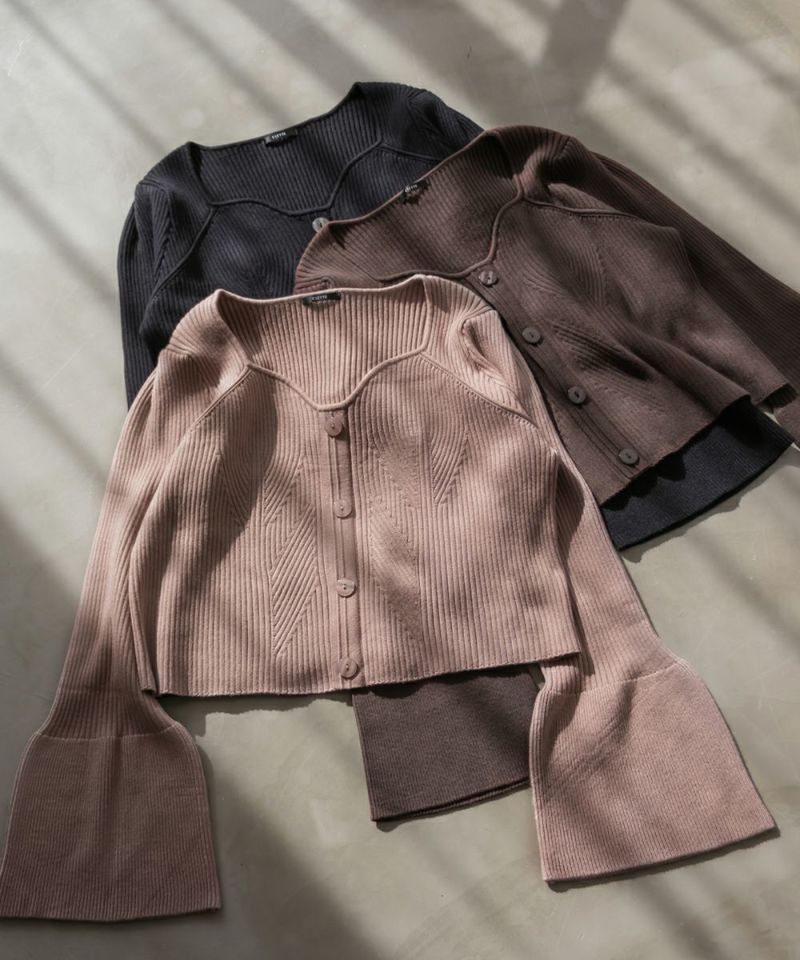クレット プルオーバー トップス セーター ベルスリーブ フレアスリーブ ベル袖 フレア袖 ショート丈 短丈 CLETTEオリジナル★フロントボタンデザインリブニット