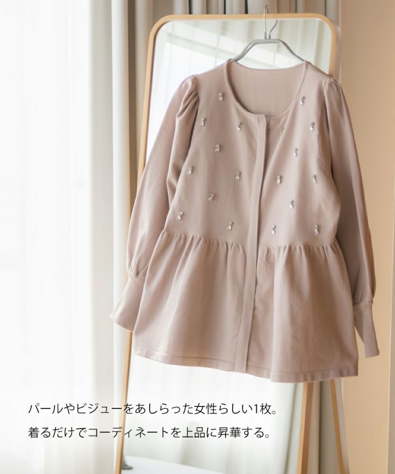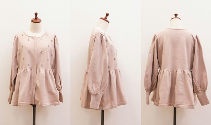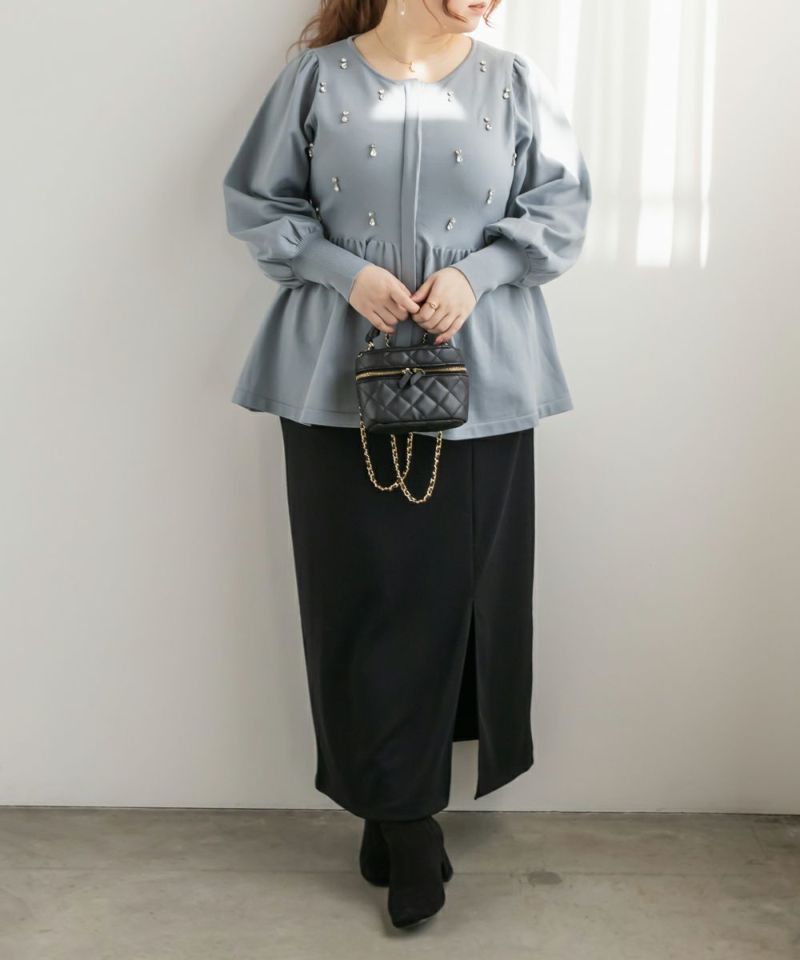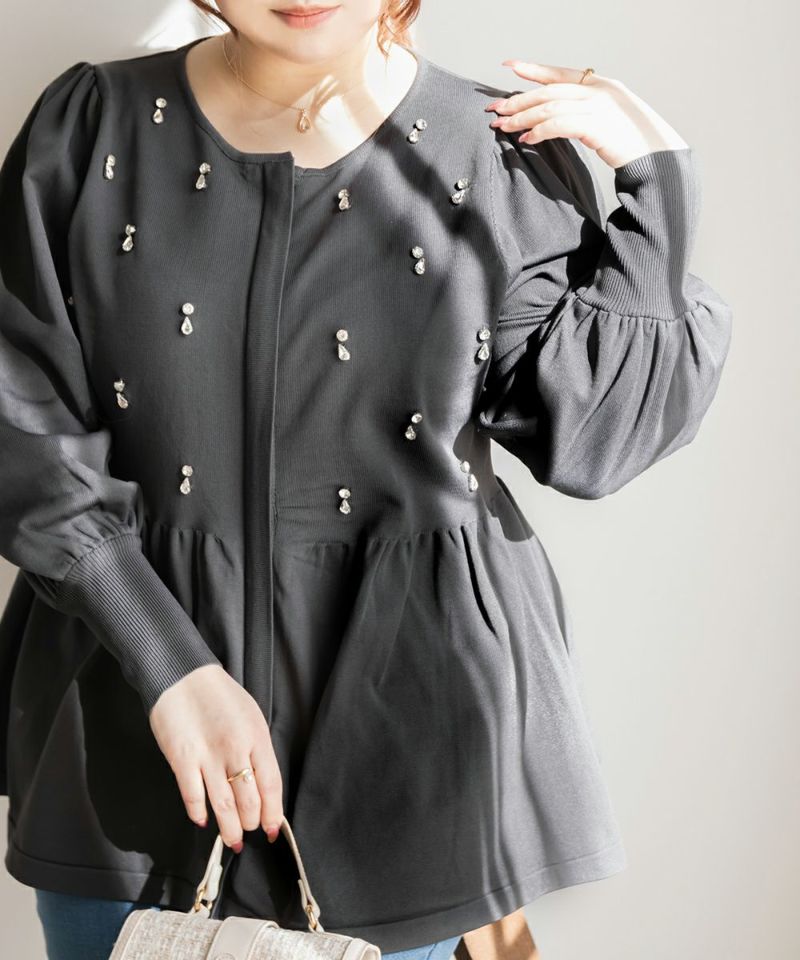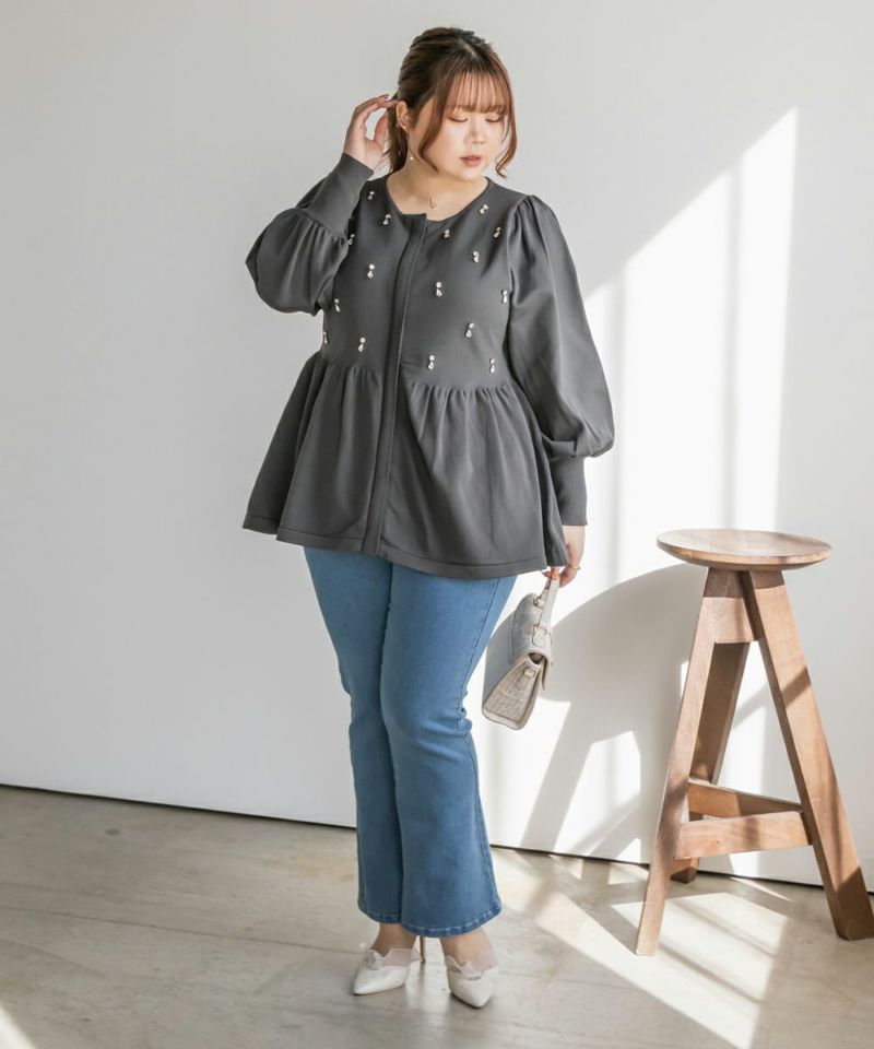 3Lを着てちょうどいいサイズでした。着やせ効果抜群のペプラムシルエットですっきりと華奢に見えました!軽くてらくちんなスポンジニットは、毛玉になりにくいし、暑くなりすぎないので秋冬春のロングシーズン着回しできるのも嬉しいです♪ジップだから開けても可愛く着用出来ました!何より胸元にビジューがあしらわれていてとってもかわいく華やかな1枚です。アクセなしでも上品になれます◎二の腕が細く見えるぽわんとしたお袖なのも嬉しいです!パンツやコンパクトなシルエットのスカートと合わせるのがお勧めです♪