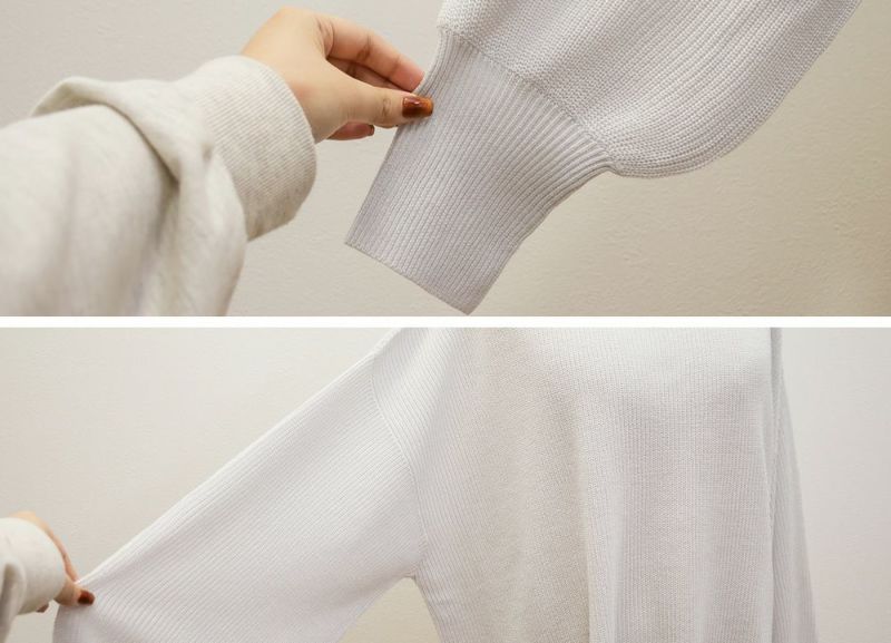 お腹もお尻も隠れるけど すっきりしたニットを探してて 買って正解でした!!! 薄手なので春にたくさん着ようと思います。 袖口はわりときつめなので少し腕まくりはしにくいかも