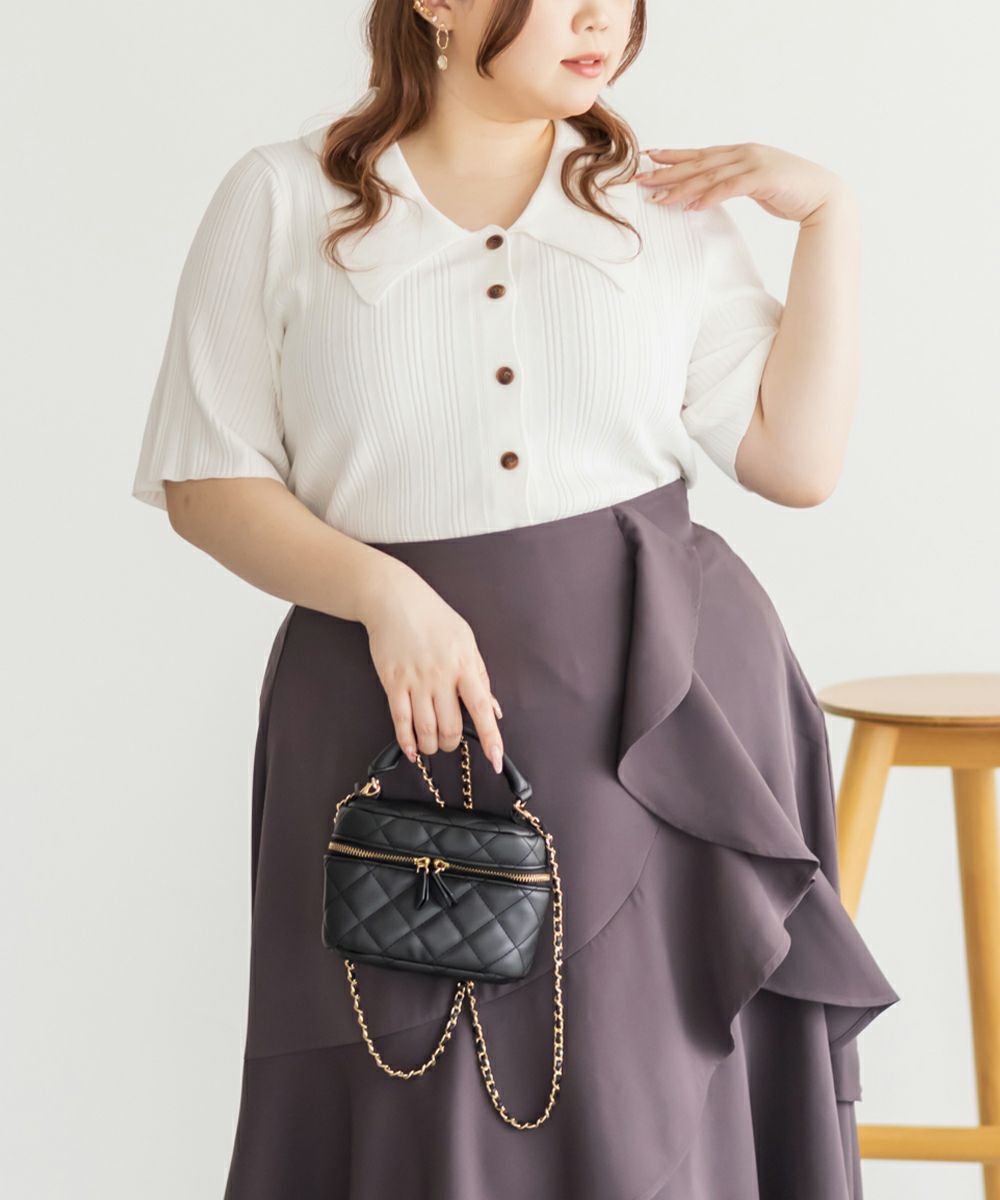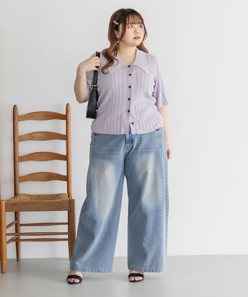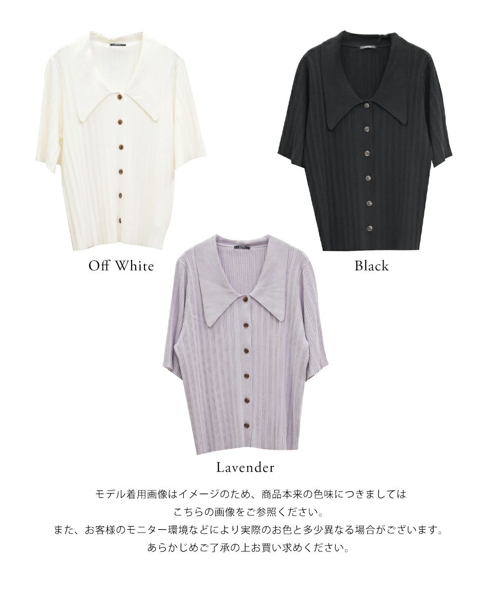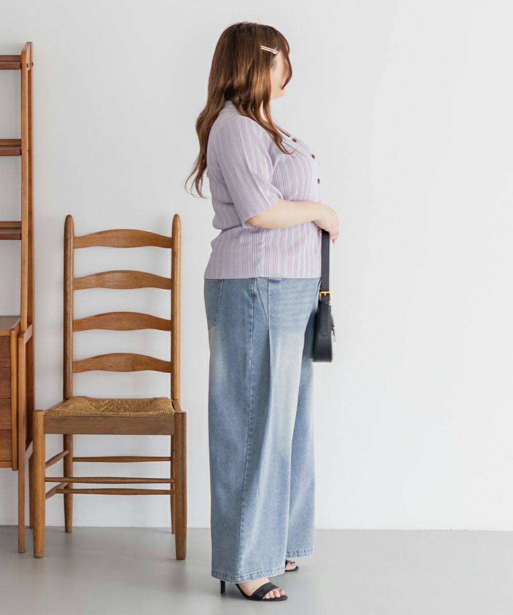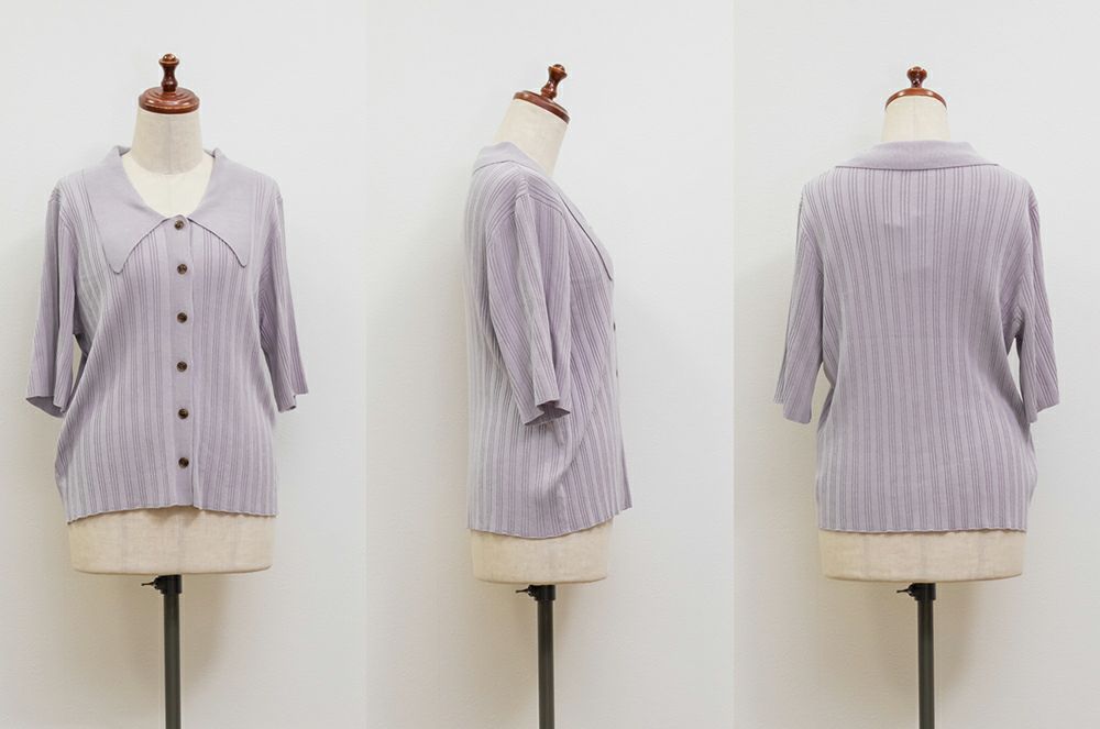 3Lを着てちょうどいいサイズ感でした。程よくゆとりのある袖周りがポイントで、ニットだけどピタッとせずに着られます◎こなれ感をプラスしてくれる襟付きニットで、オンオフにも使える大人っぽい印象なのが嬉しい!お仕事からデイリーまで幅広いシーンで着用いただけます♪襟が顔まわりをシャープな印象に見せてくれ、ボトムスにINした着こなしや、裾だしでももちろん着やすい着丈です!ボタンを開けて羽織としての着こなしもおすすめです。さらりとした軽やかな生地も魅力で、真夏でも使えるサマーニットです!ワイドパンツやフレアスカートなど、ボリューム感のあるボトムスとの合わせもおすすめで、コンパクトなサイズ感なのでジャケットのインナーとしても!裾のボタンを少し開けて抜け感を出す着方が今っぽくて可愛いです!
