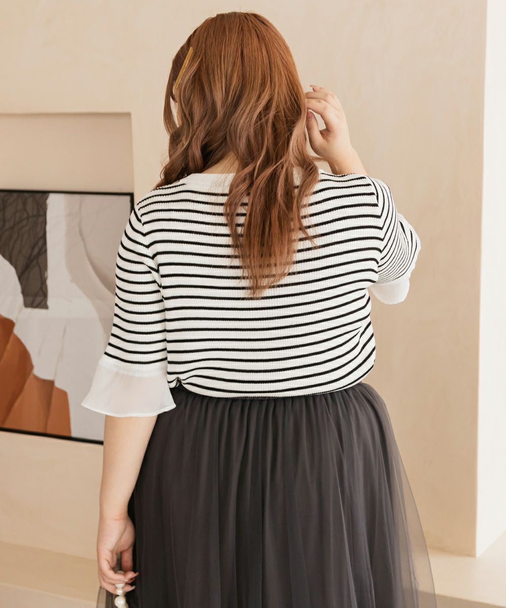 他の画像を見る CLETTE オリジナル 袖シフォン ボーダー サマーニット LL 3L 4L クレット ガーリー カジュアル 春 夏 CLETTEオリジナル★袖シフォンボーダーサマーニット ¥ 3,960 税込 在庫切れ カートに入れる お気に入りに登録する