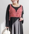 3Lを着てピッタリのサイズ感でした。後ろはゴム入りで、窮屈感のない着心地です。立体感のあるフリンジジャガード素材が印象的な、大人っぽい主役級ビスチェです♪存在感がありながらも上品で、いつものコーデにプラスするだけでぐっとおしゃれ見えします!程よい厚みとハリのある生地感が、ボディラインを拾いすぎずきれいなシルエットをキープしてくれるのも嬉しいです◎Tシャツやシアートップス、シャツなどとのレイヤードにぴったりで、季節を問わず活躍するアイテムです。