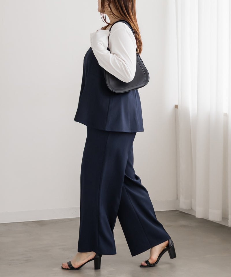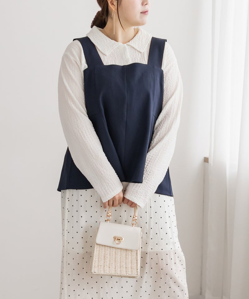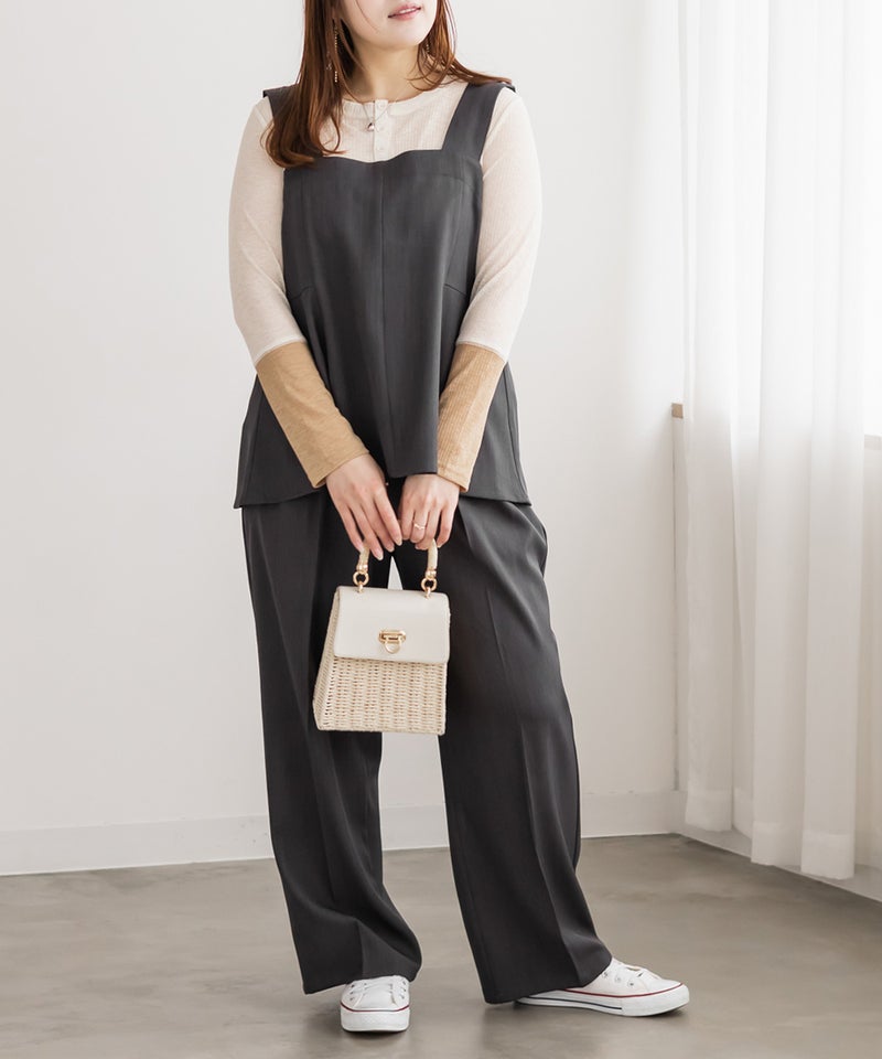 3Lサイズを着用して、ちょうどいい着心地でした。後ろはゴムで窮屈感のない着心地です!ボディラインを拾いずらい生地とサイズ感で、お腹周りもしっかりカバーしてくれます◎コーデを大人っぽく仕上げてくれます!オールシーズン使える生地感で、シンプルなトップス・ワンピースなどに重ねてコーデを楽しめるアイテムです♪別売りのパンツとセットアップできるのもすっきりした印象になって大人かわいいです。