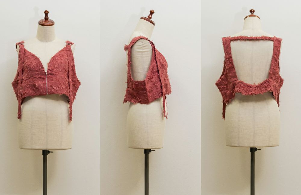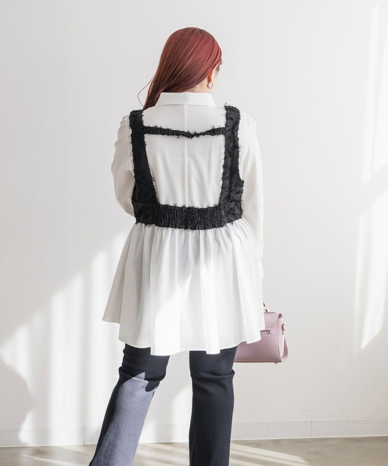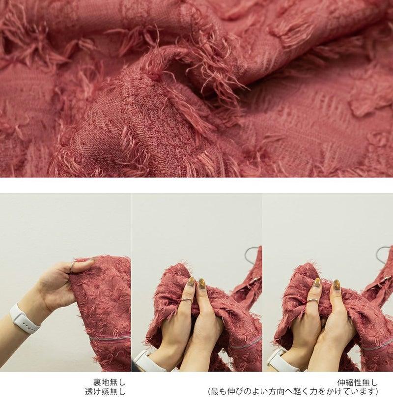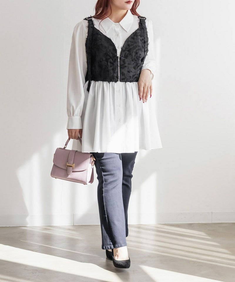 3Lを着てピッタリのサイズ感でした。後ろはゴム入りで、窮屈感のない着心地です。立体感のあるフリンジジャガード素材が印象的な、大人っぽい主役級ビスチェです♪存在感がありながらも上品で、いつものコーデにプラスするだけでぐっとおしゃれ見えします!程よい厚みとハリのある生地感が、ボディラインを拾いすぎずきれいなシルエットをキープしてくれるのも嬉しいです◎Tシャツやシアートップス、シャツなどとのレイヤードにぴったりで、季節を問わず活躍するアイテムです。