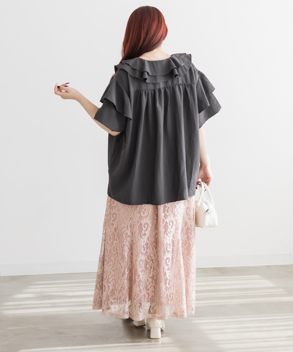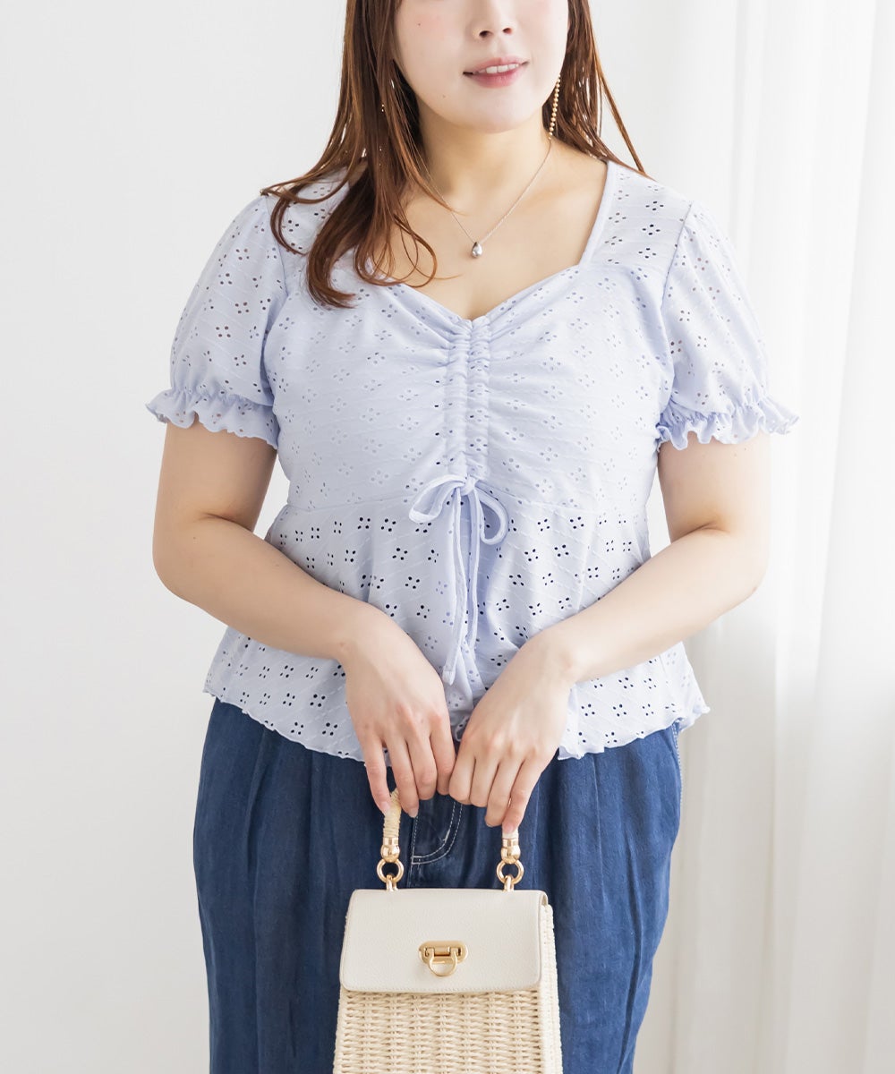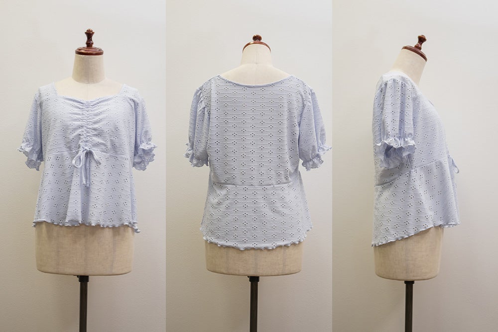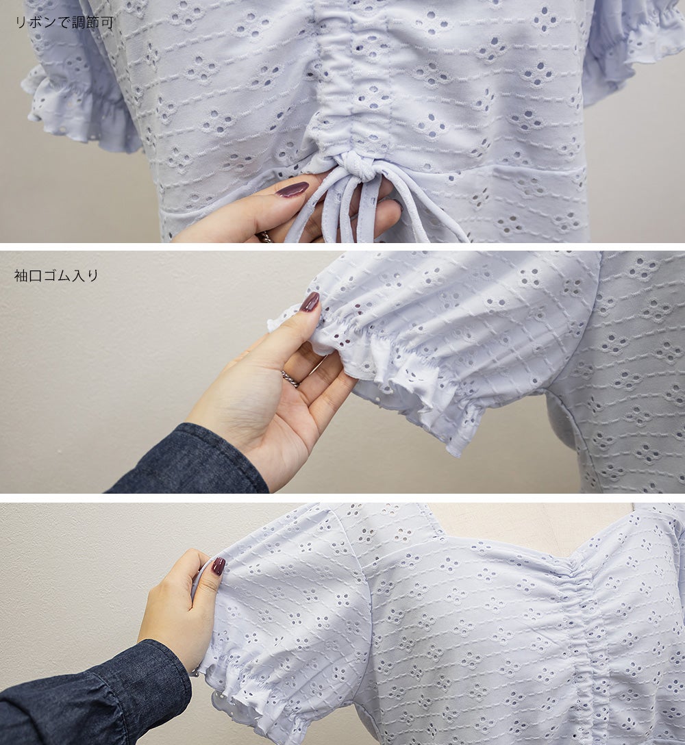 アイレットレースシャーリングブラウス
