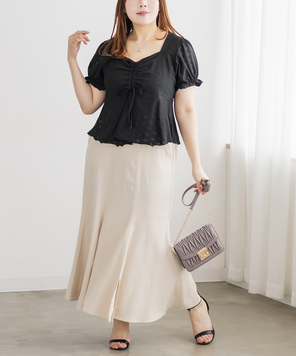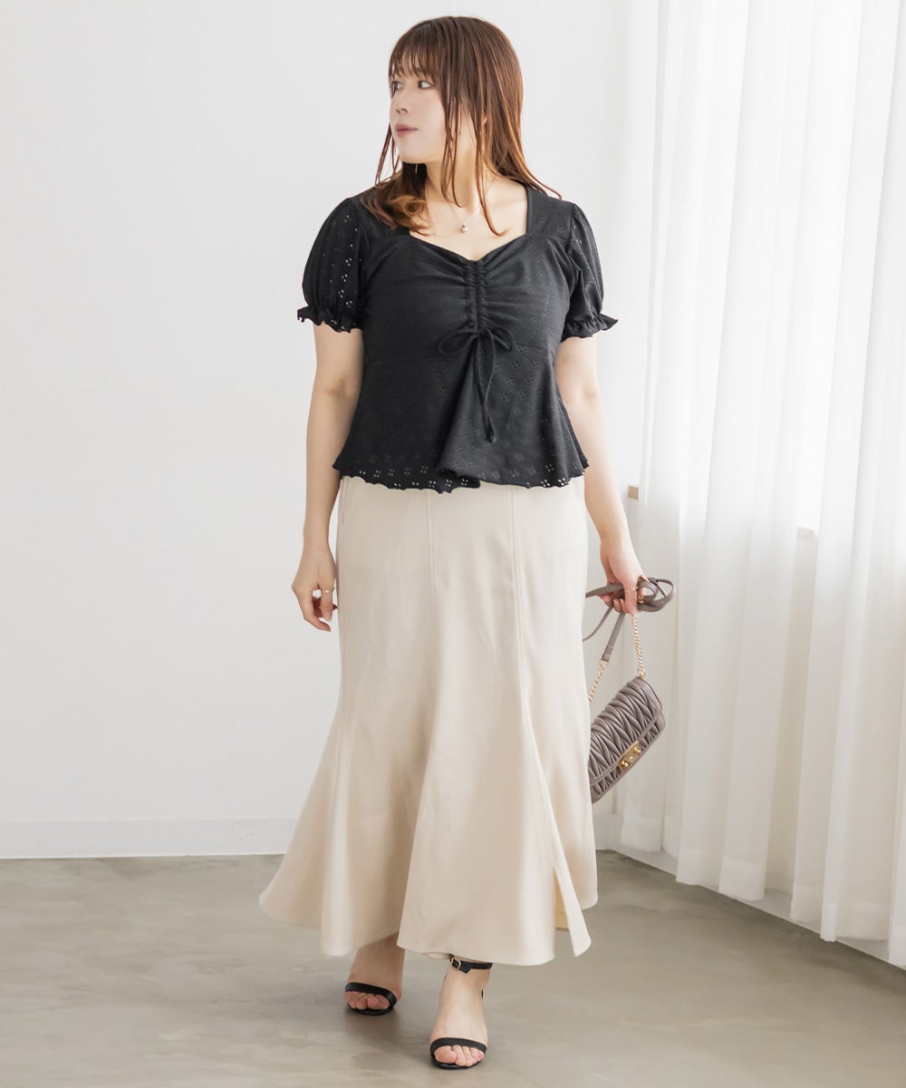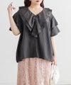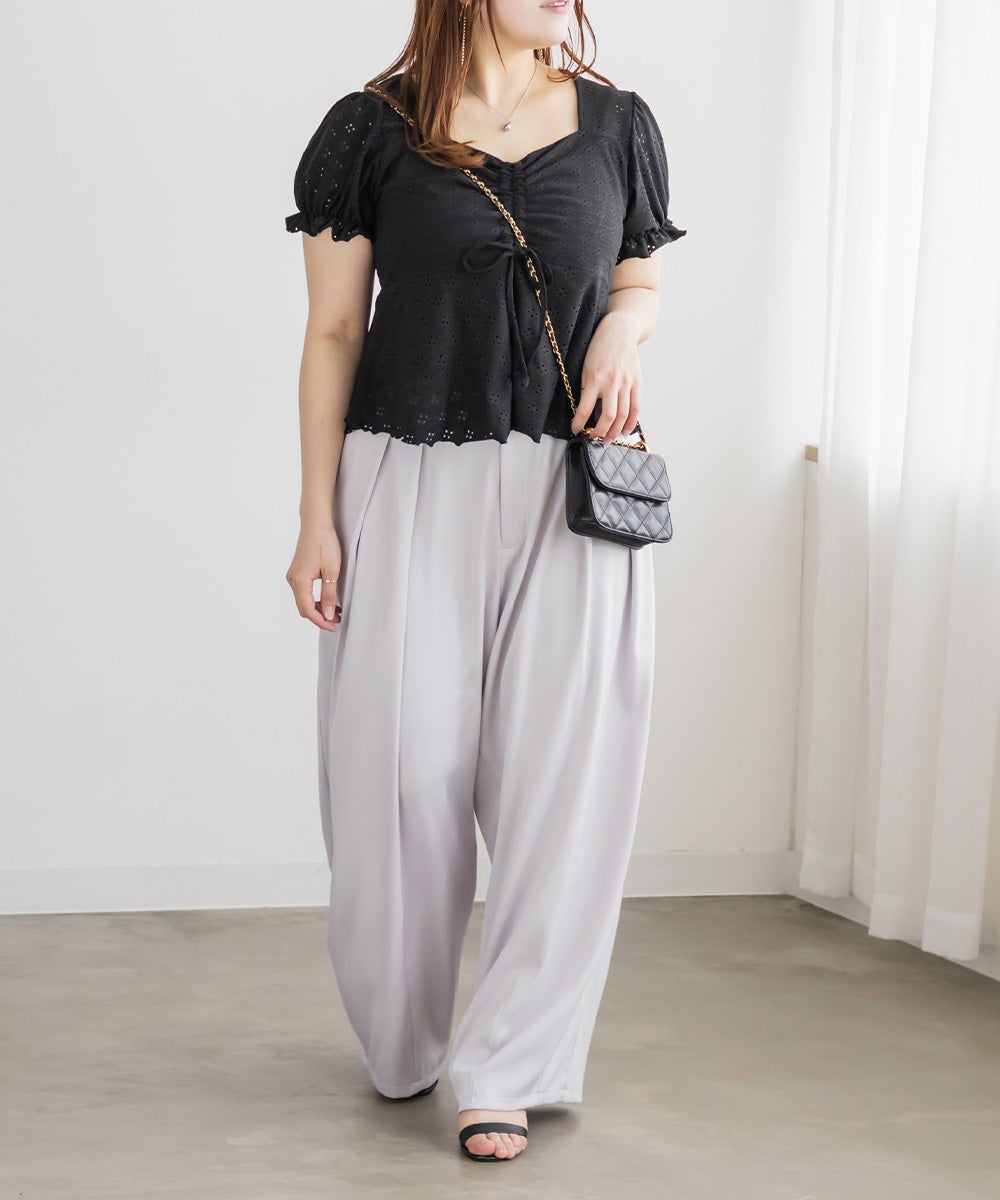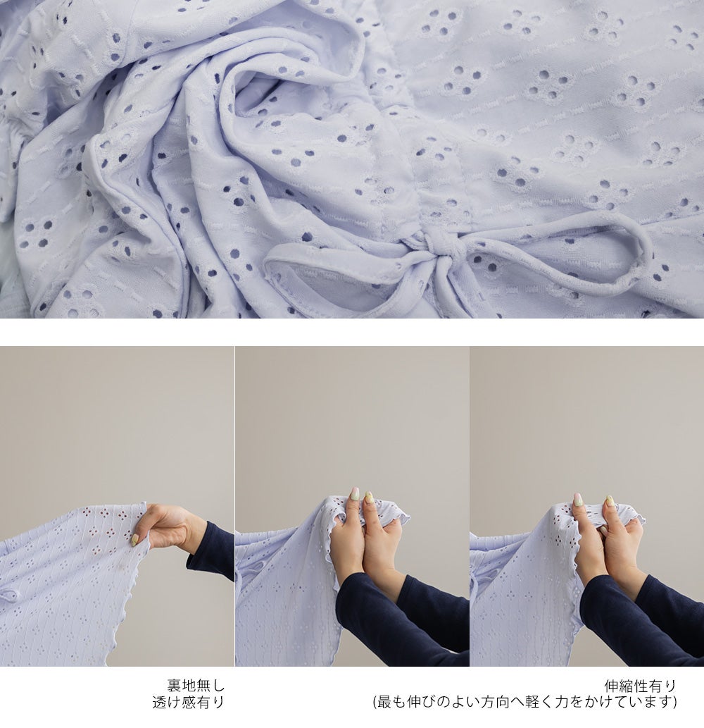 アイレットレースシャーリングブラウス