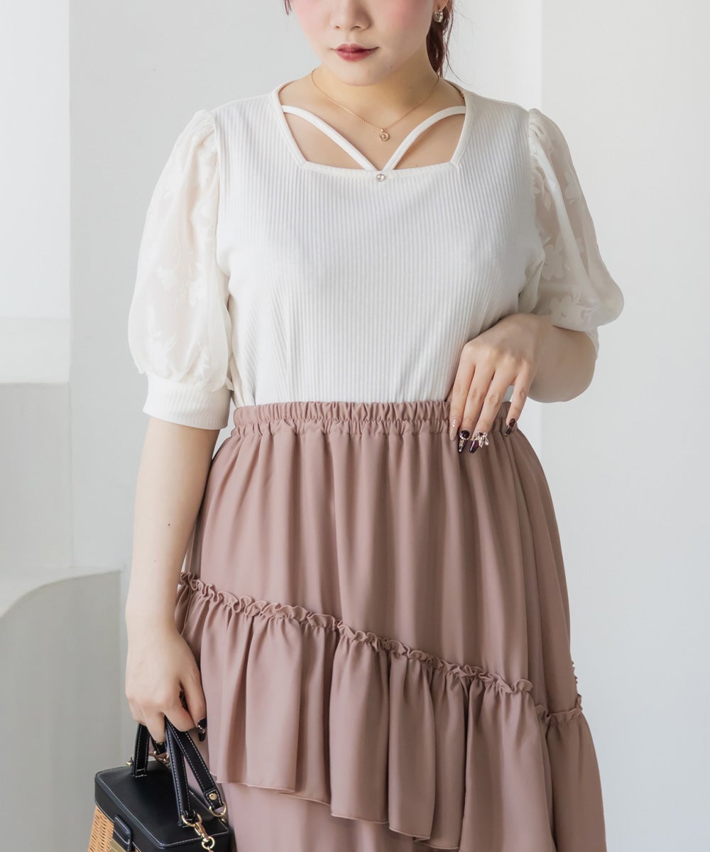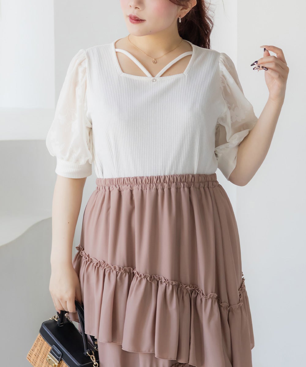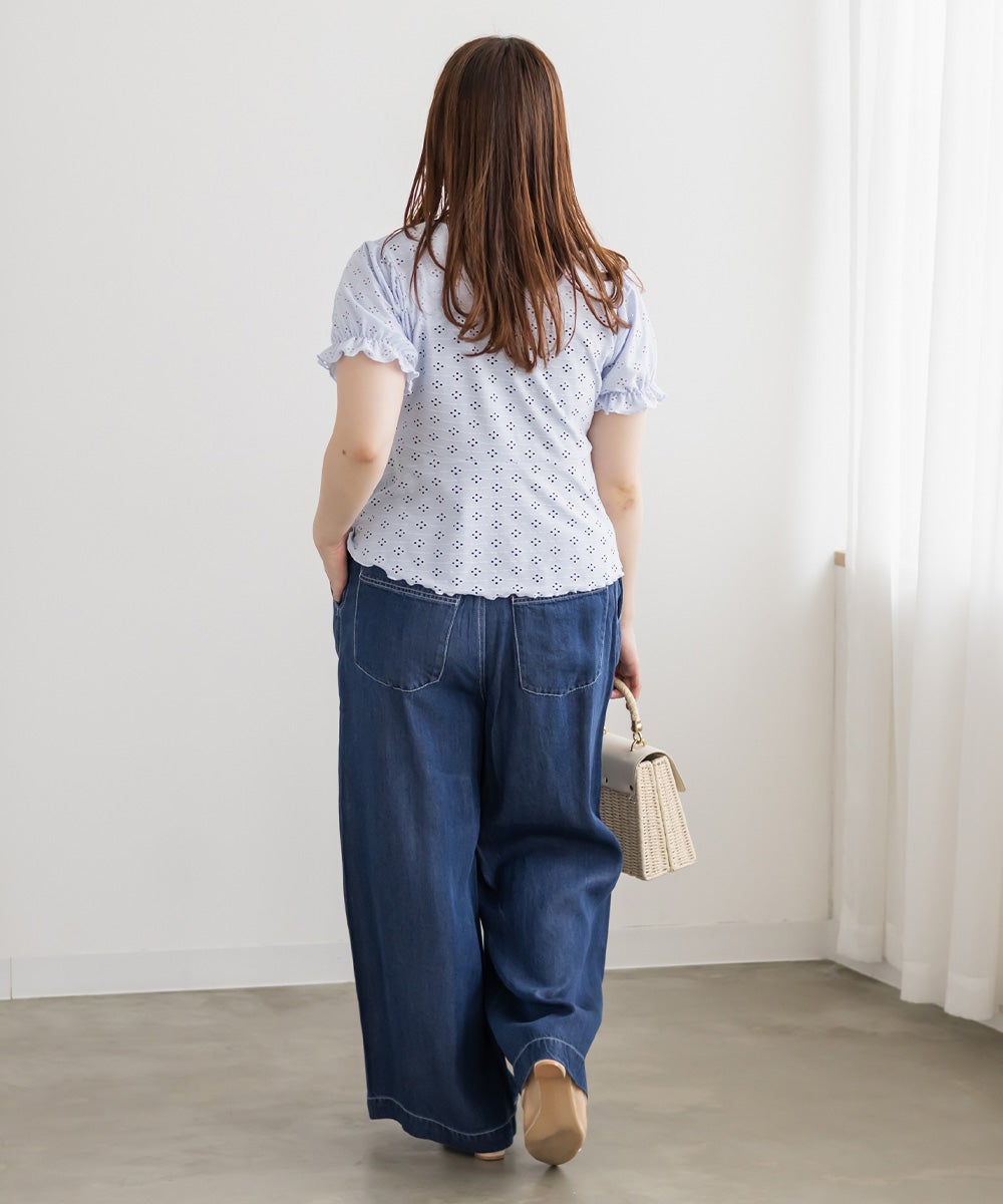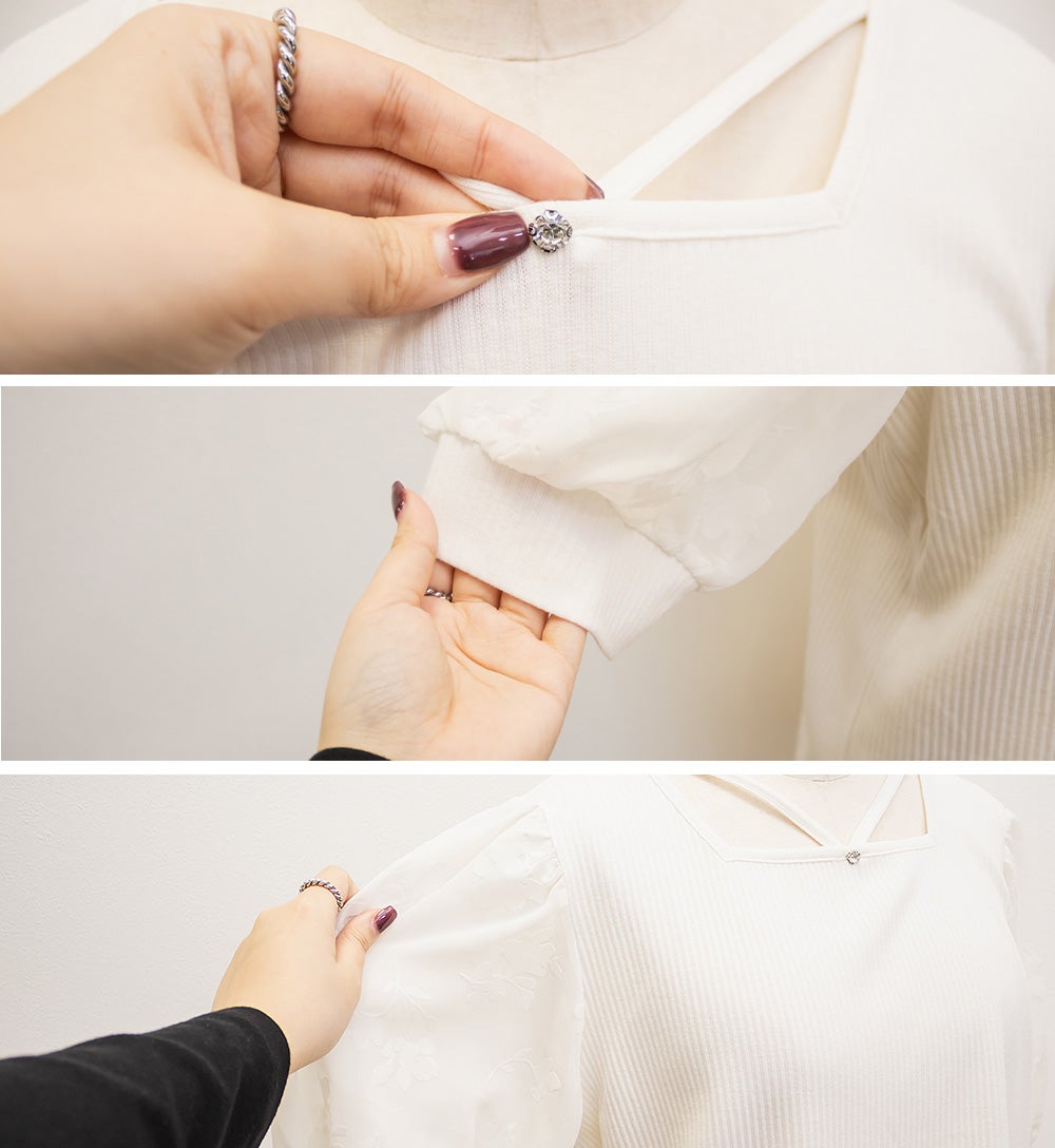 アイレットレースシャーリングブラウス