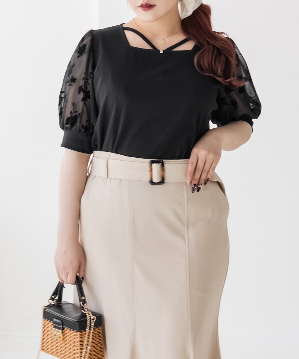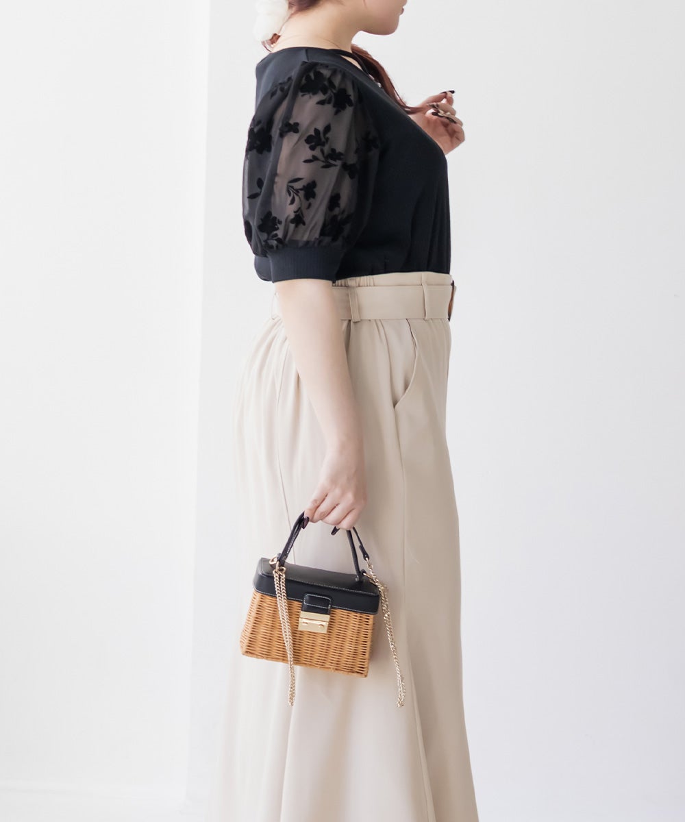 フロッキー花柄切替半袖プルオーバー