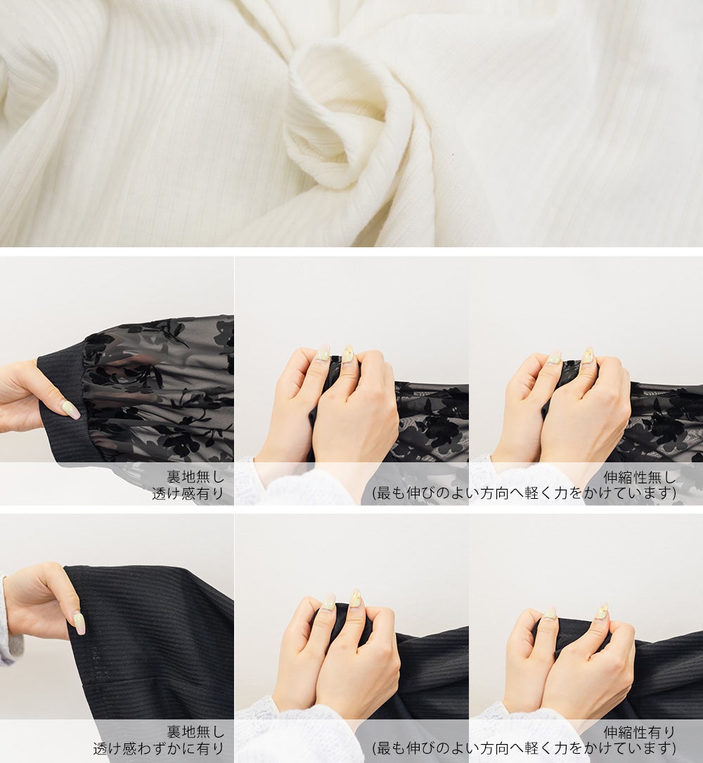 フロッキー花柄切替リブプルオーバー