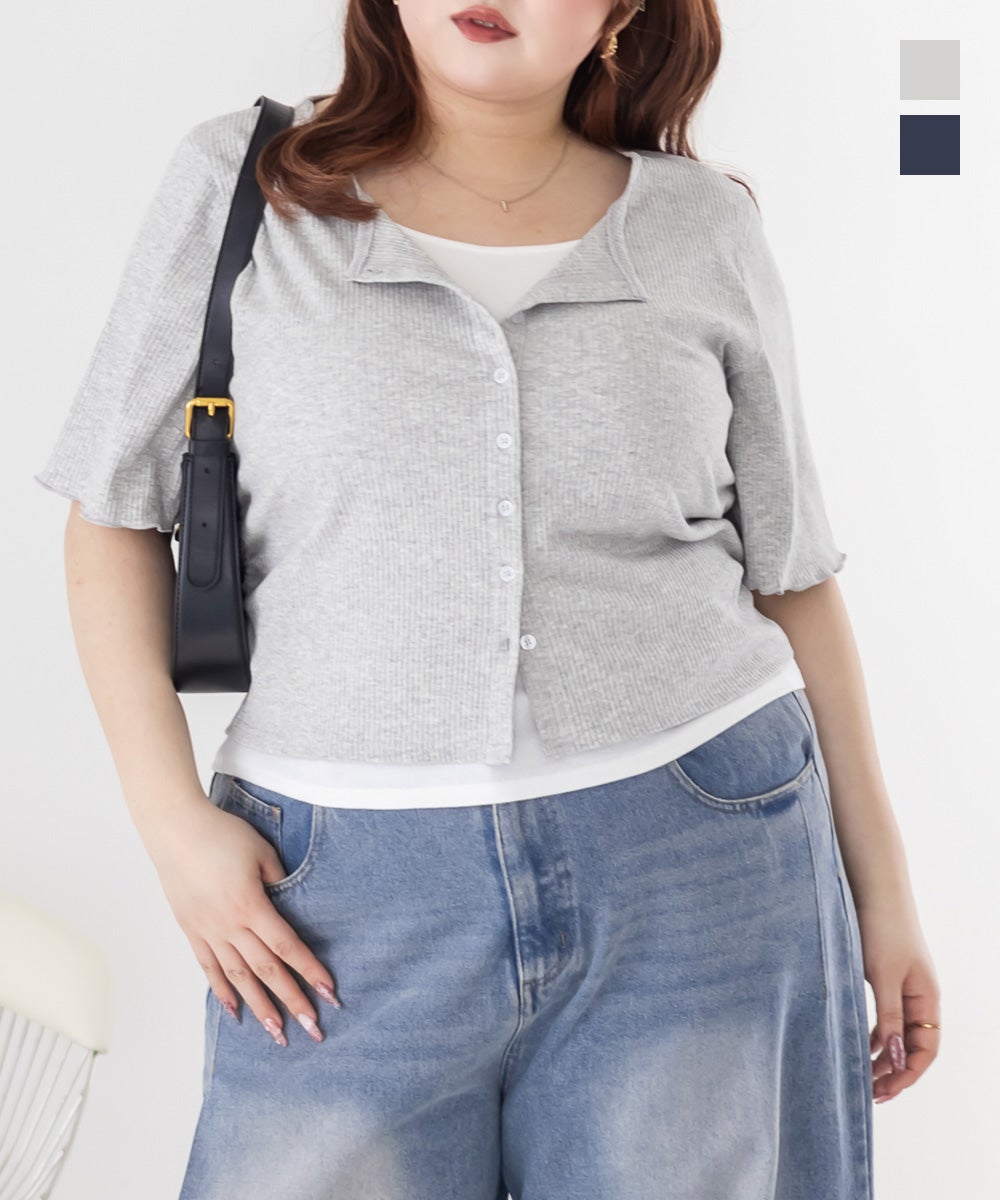 ポケット付き半袖ニットカーディガン