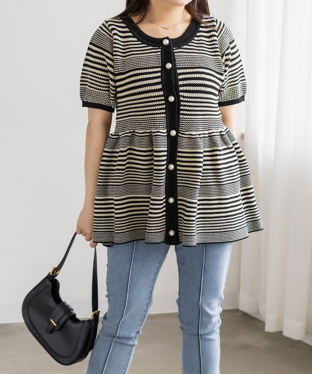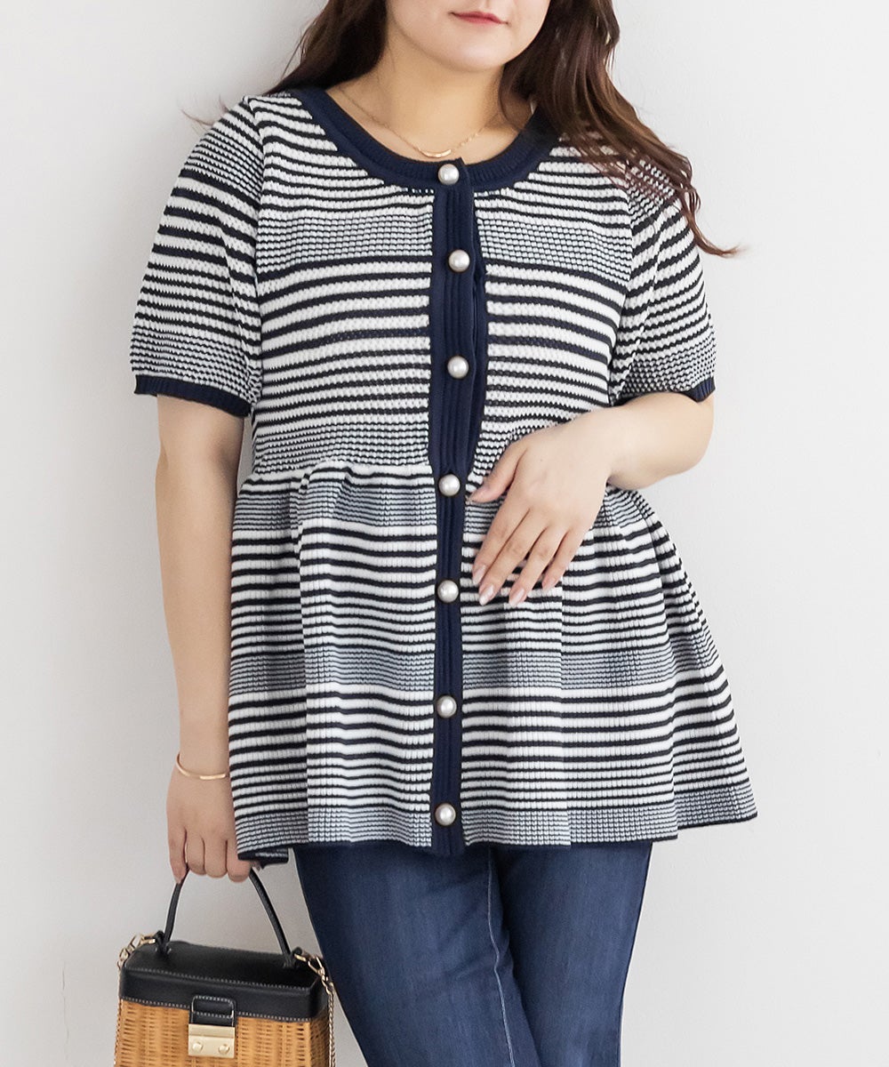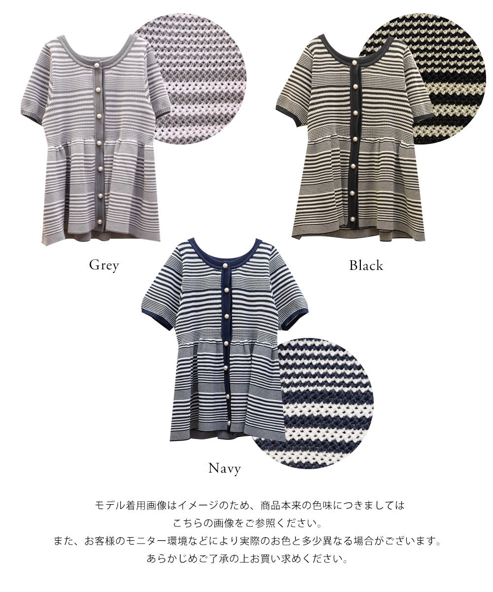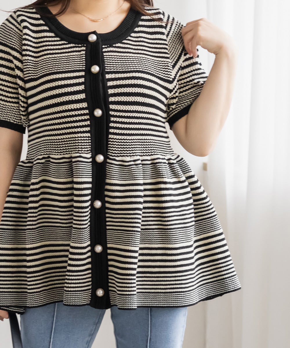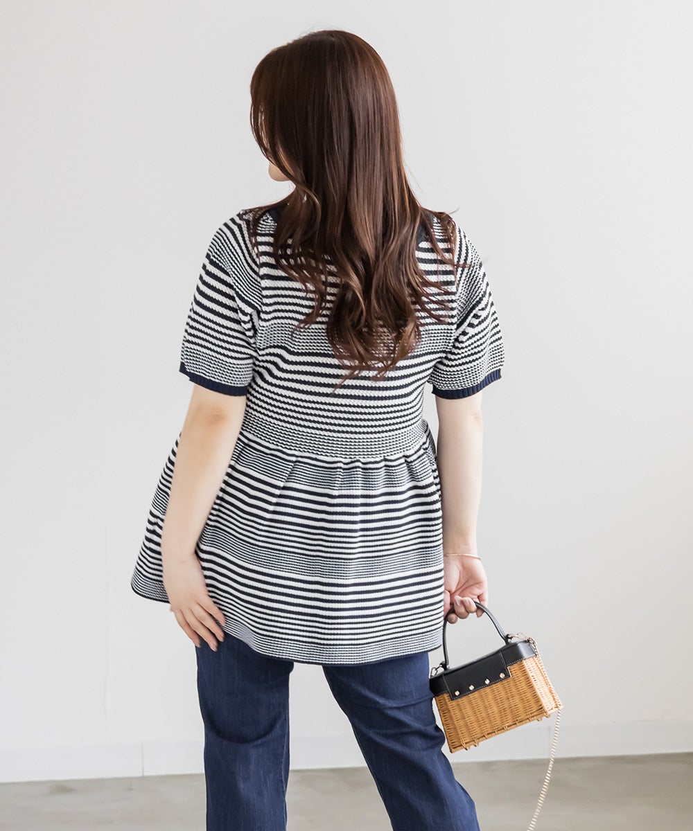 CLETTEオリジナルパールボタンボーダーペプラムニット