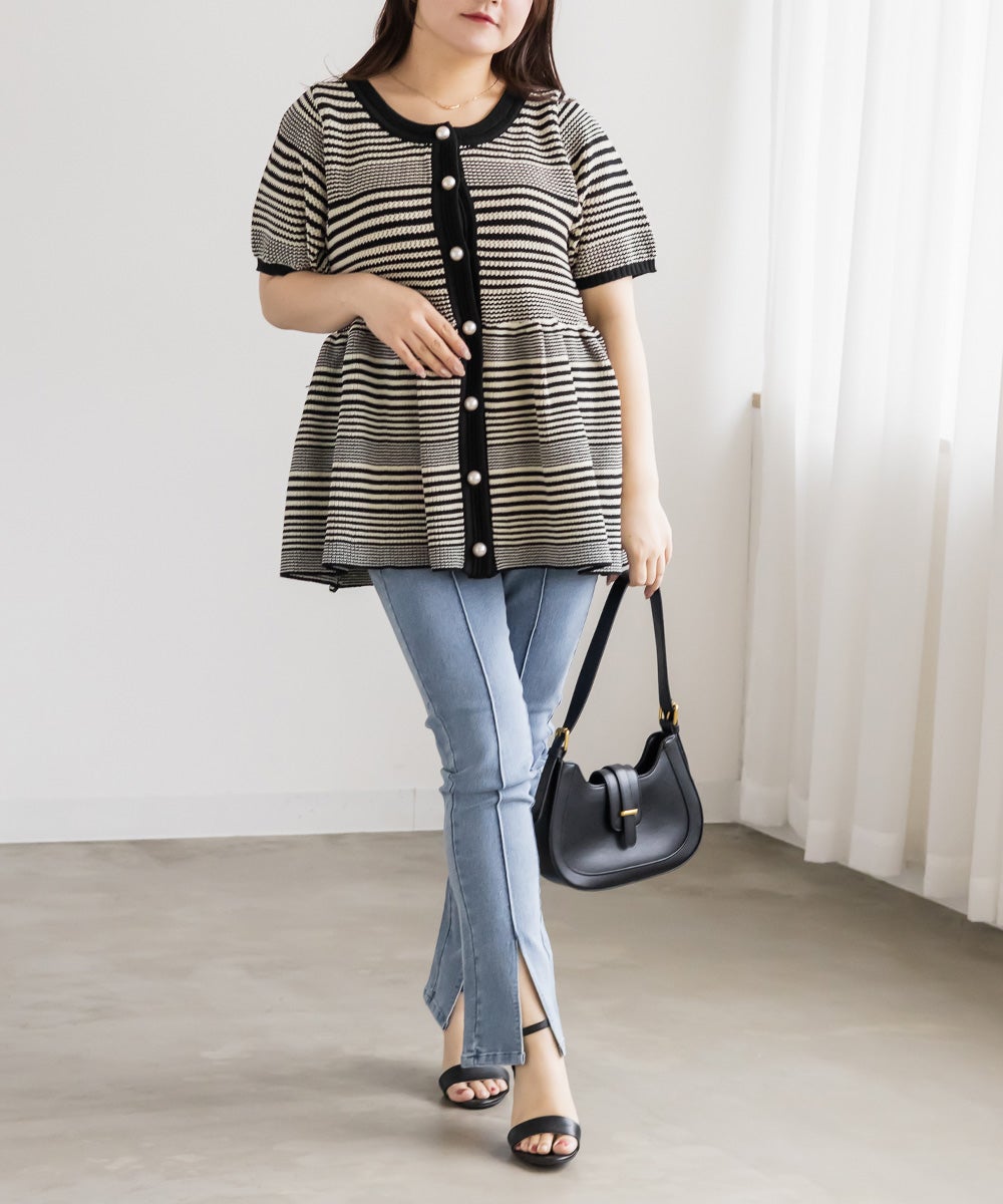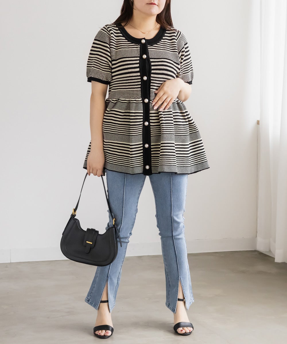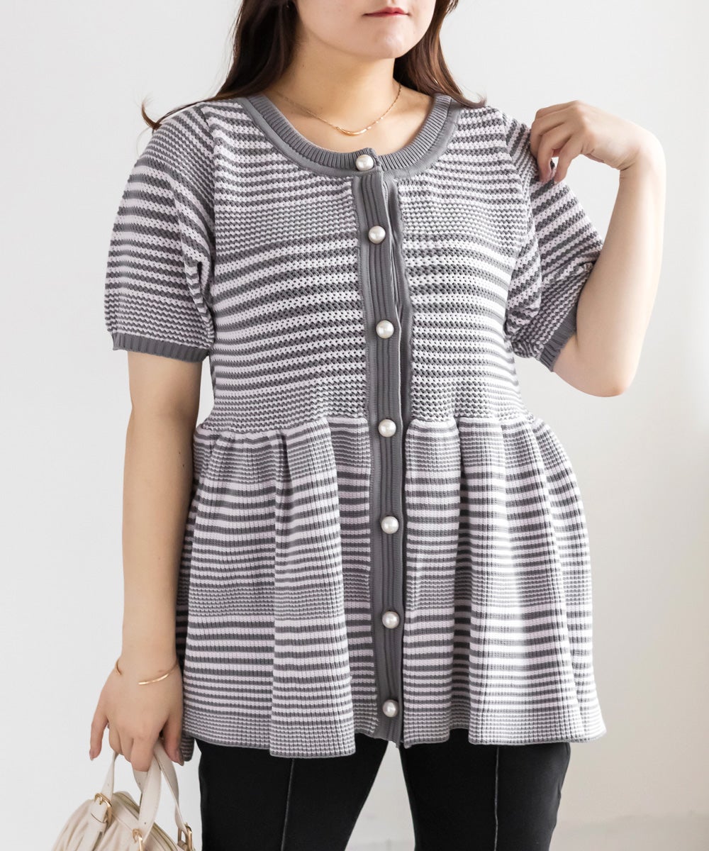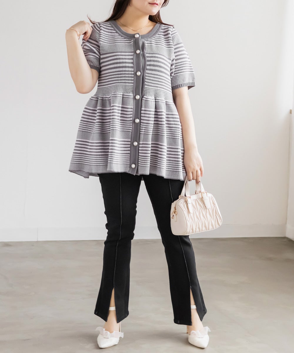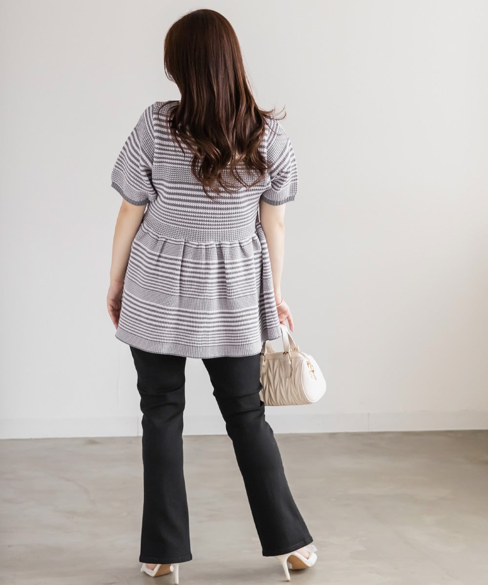 CLETTEオリジナルパールボタンボーダーペプラムニット