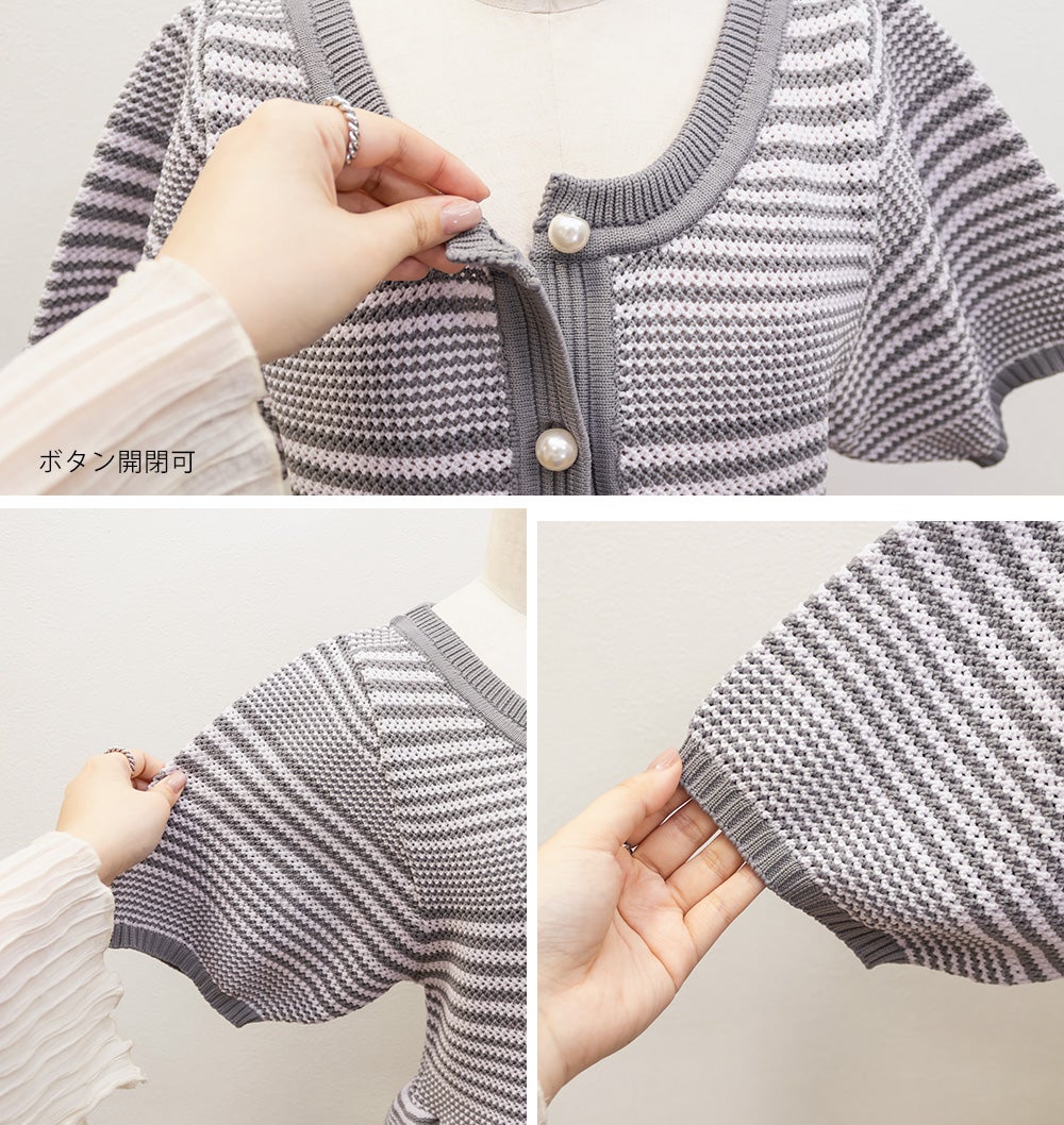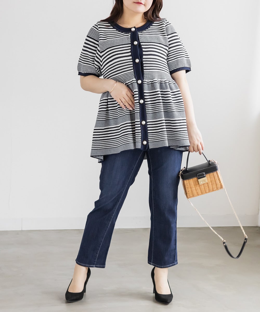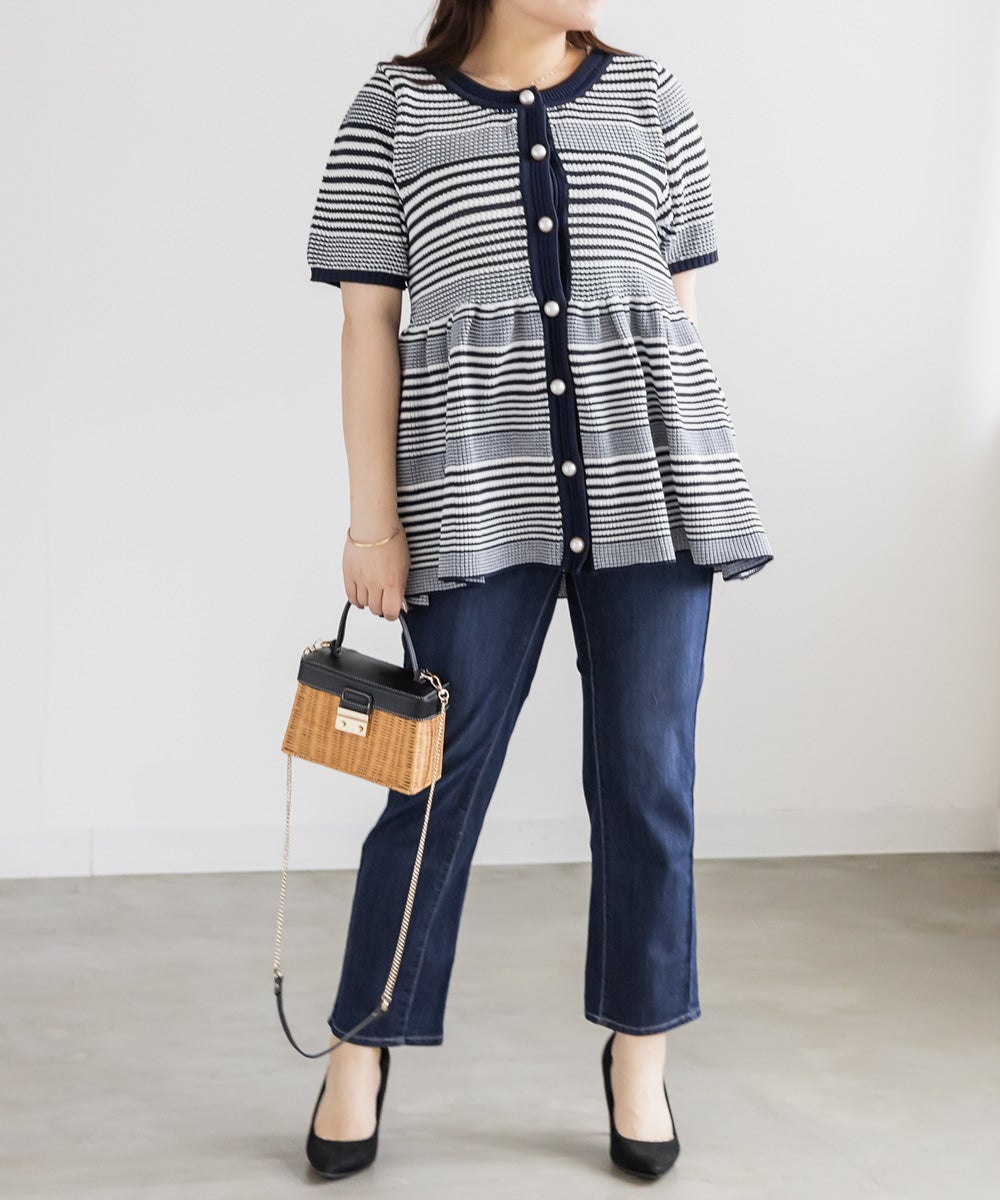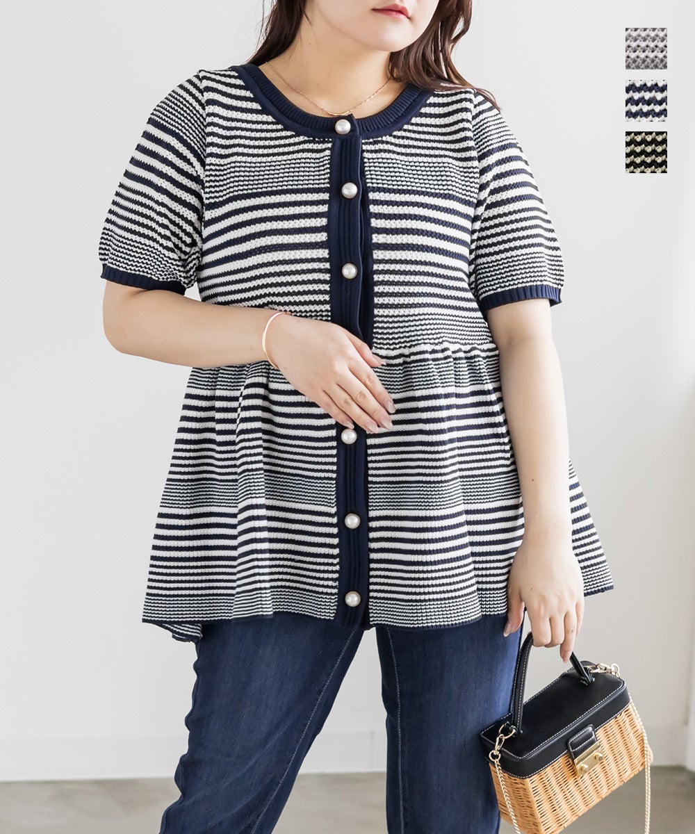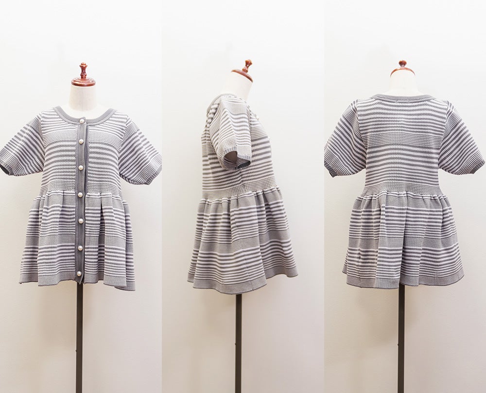 CLETTEオリジナルパールボタンボーダーペプラムニット
