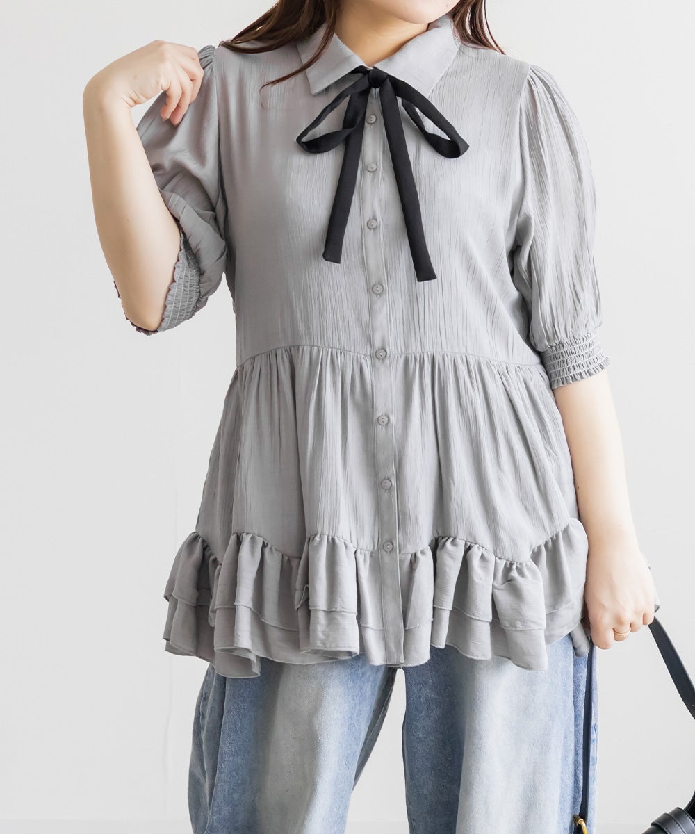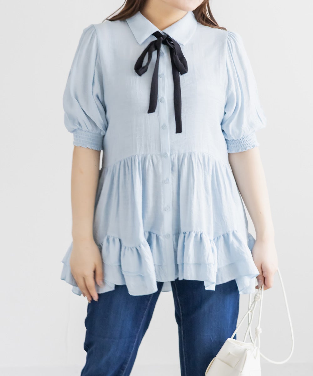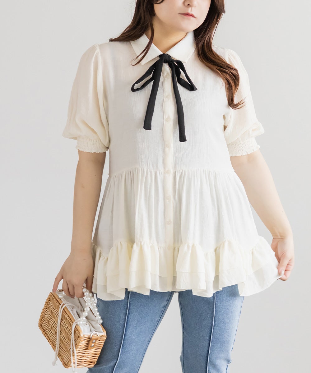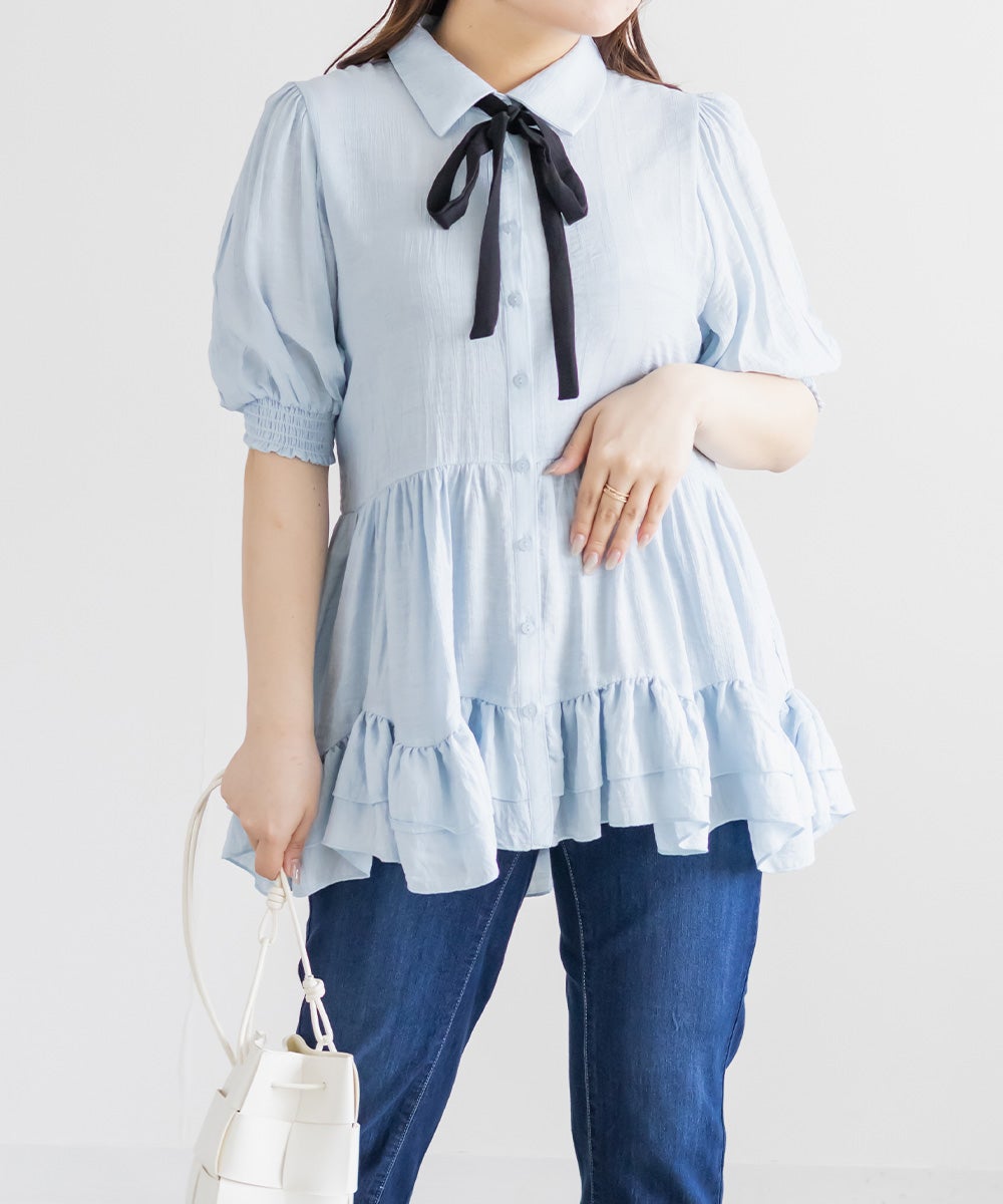 CLETTEオリジナルなみなみティアードリボンタイブラウス