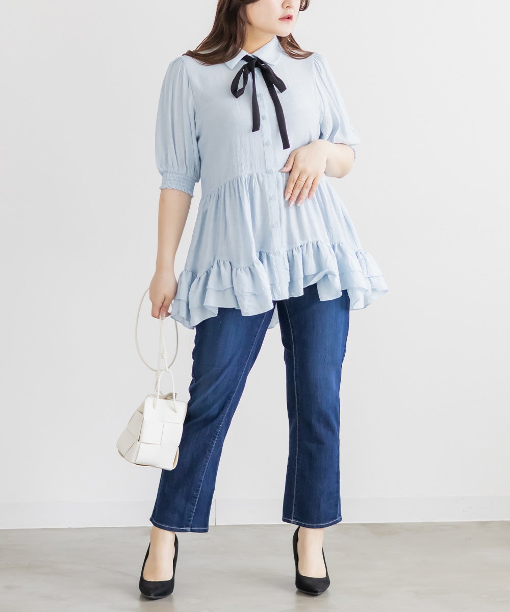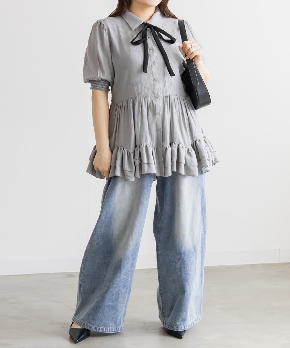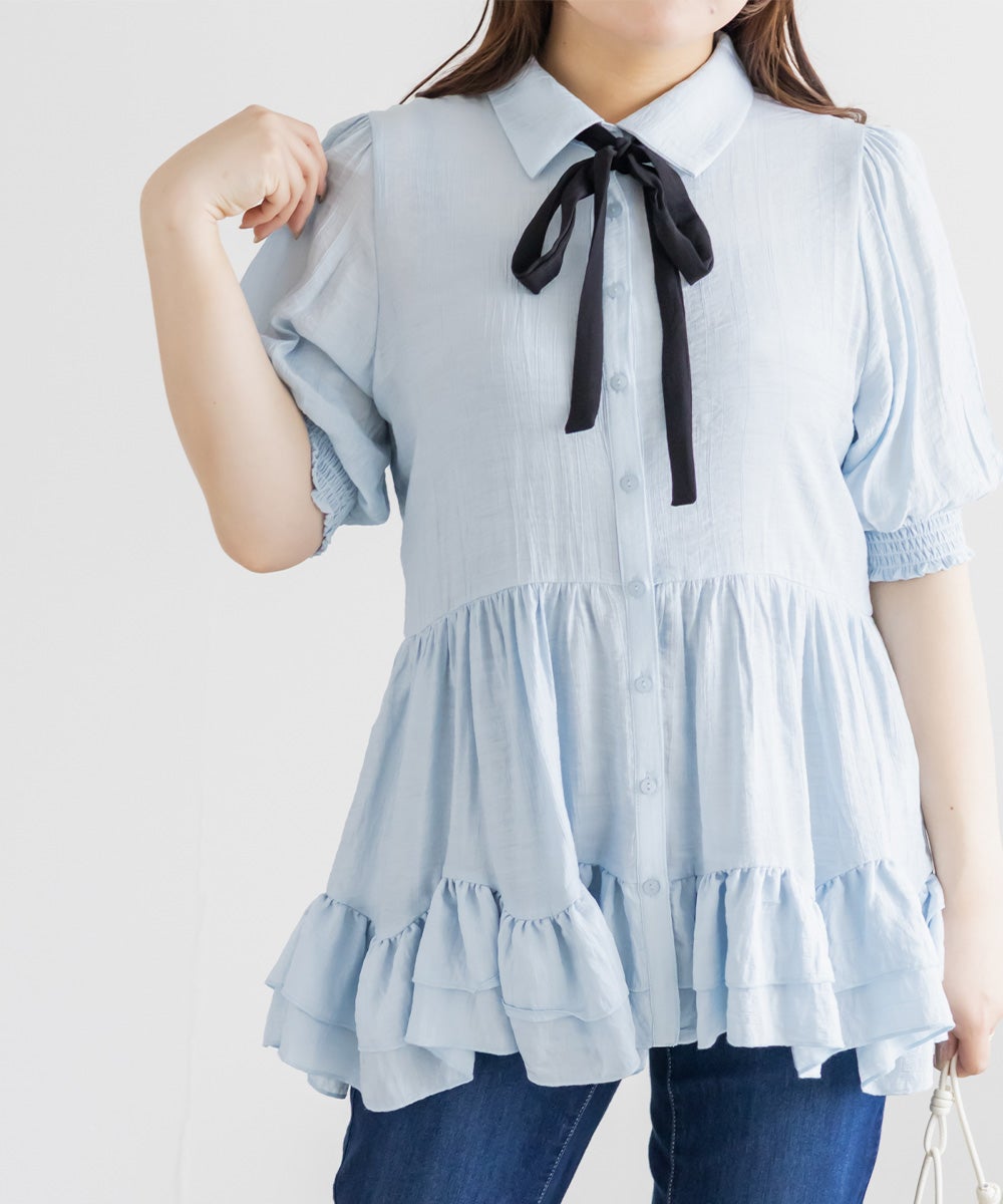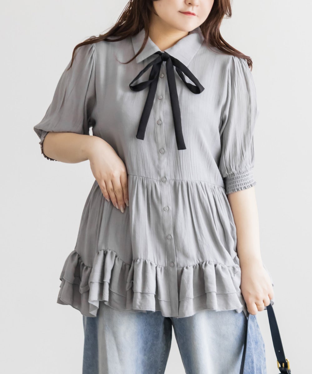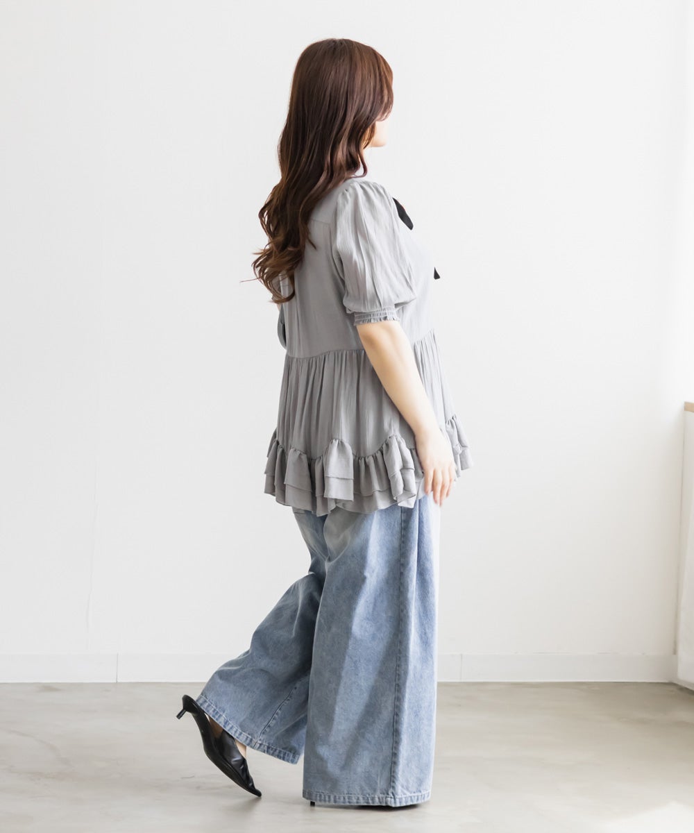 CLETTEオリジナルなみなみティアードリボンタイブラウス