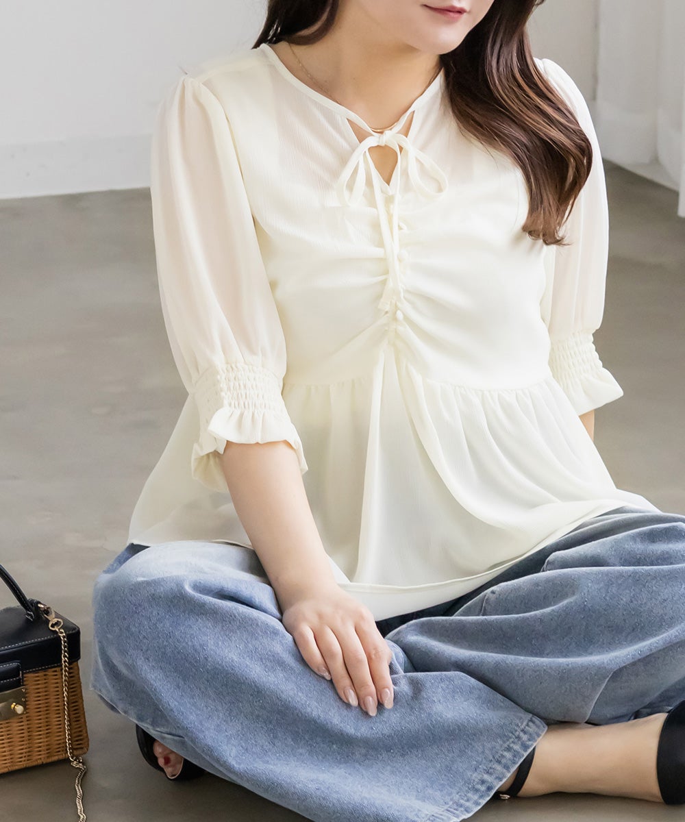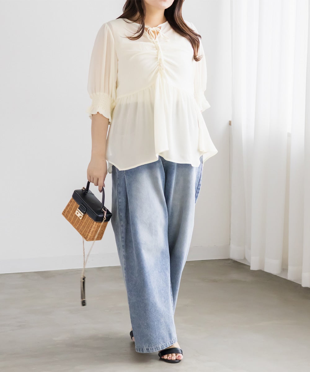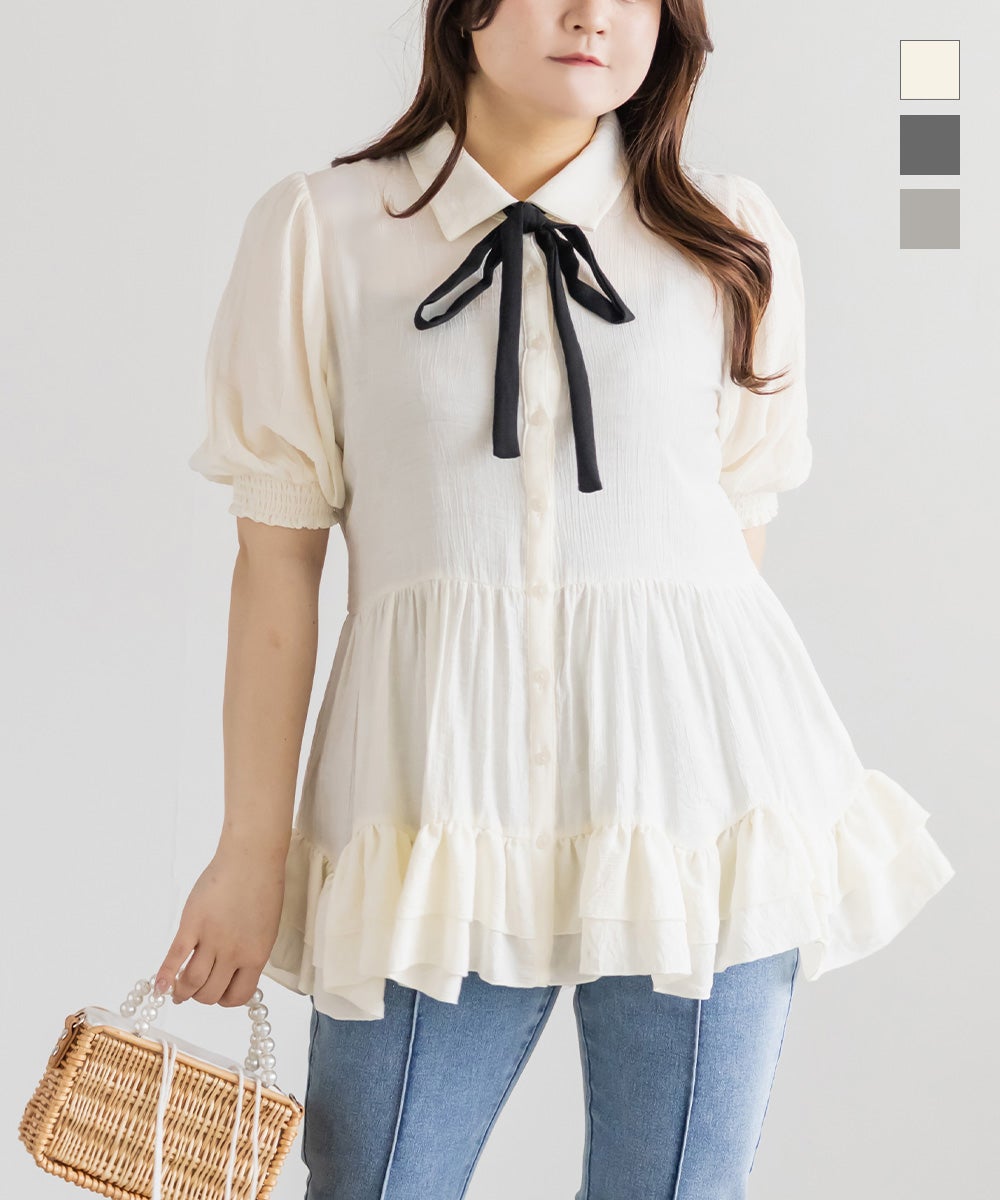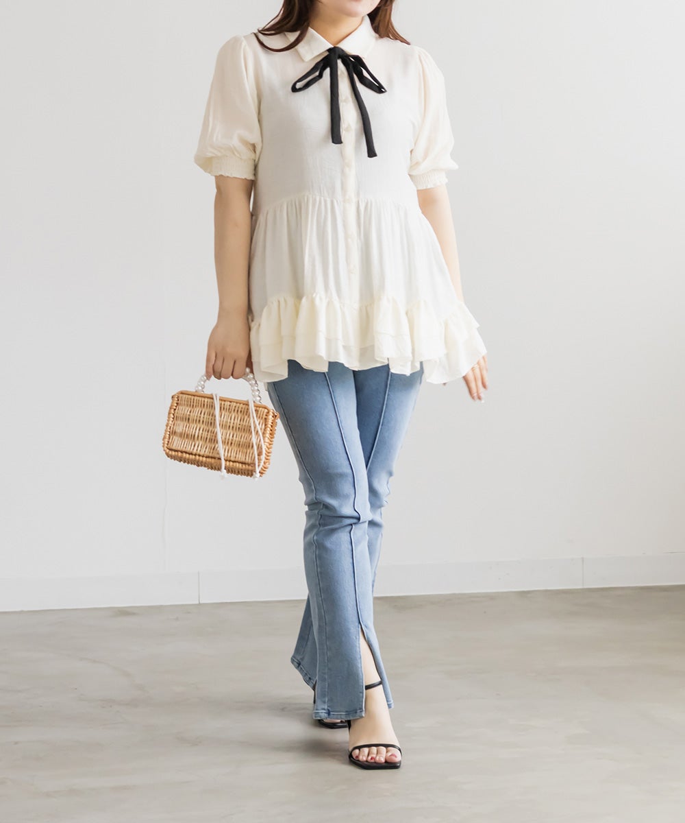 CLETTEオリジナルなみなみティアードリボンタイブラウス