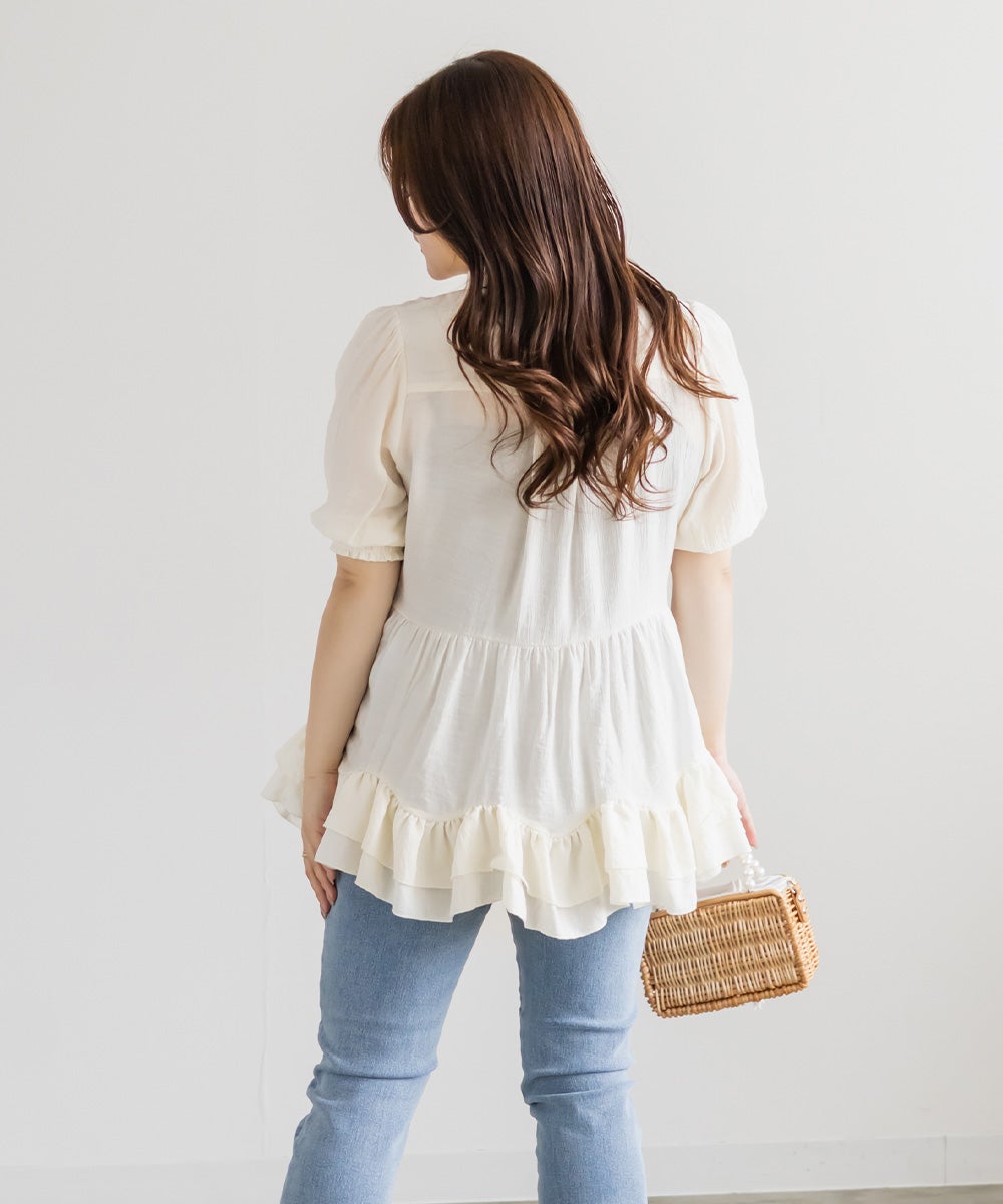 CLETTEオリジナルフリルデザインペプラムカットソー