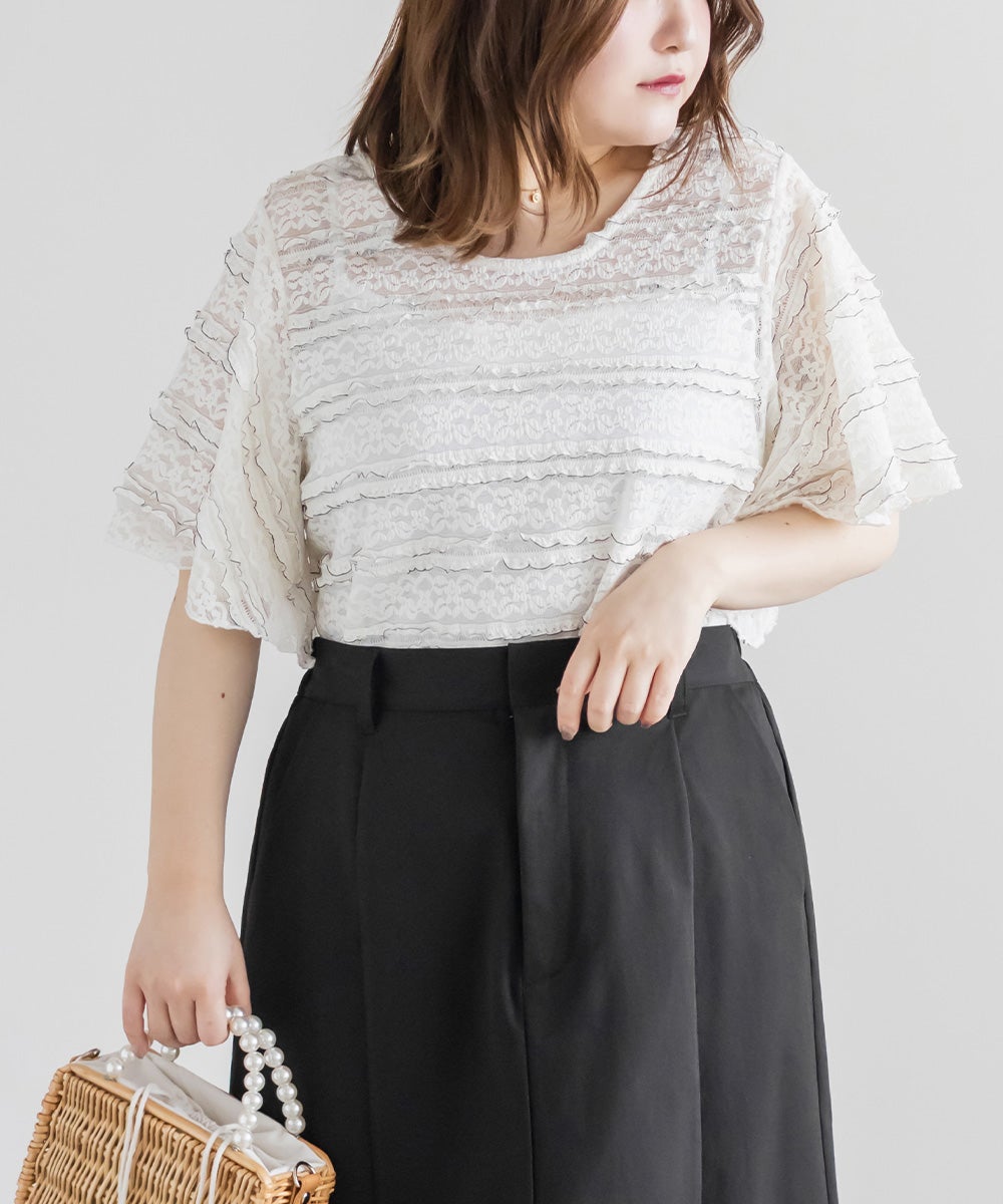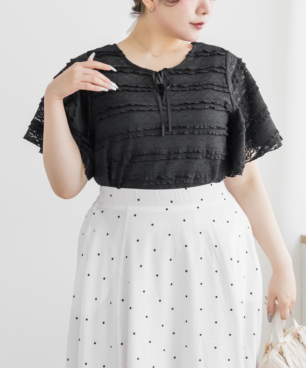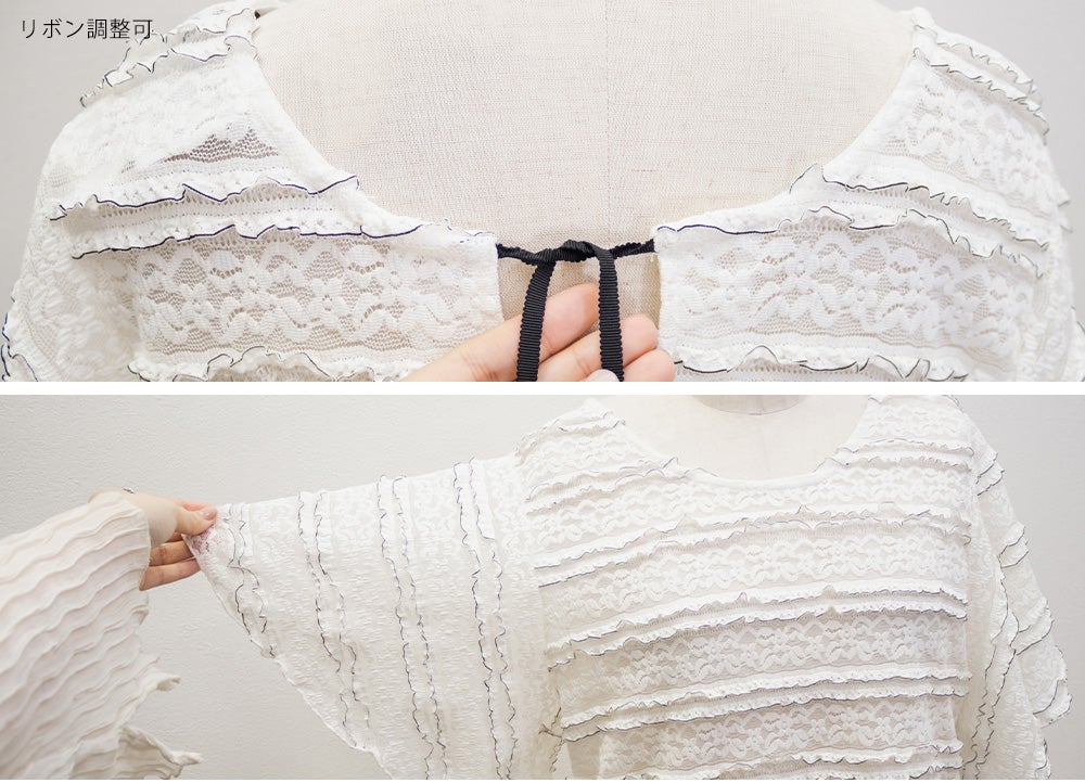 CLETTEオリジナル前後2WAYフリルレースプルオーバー