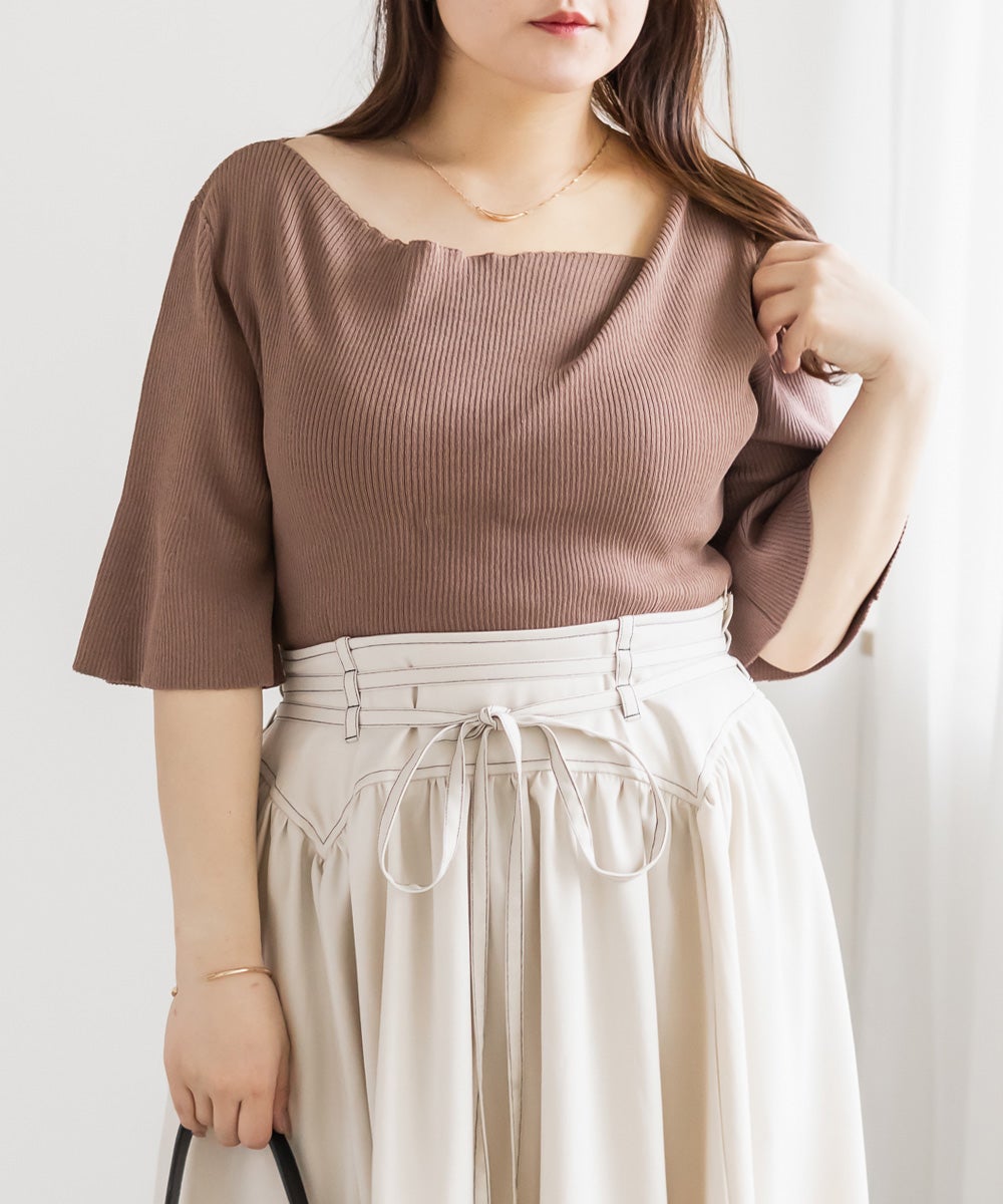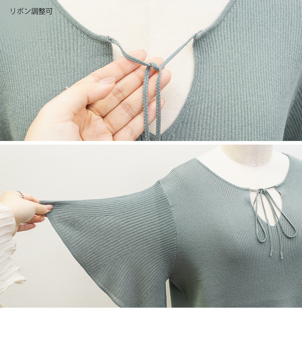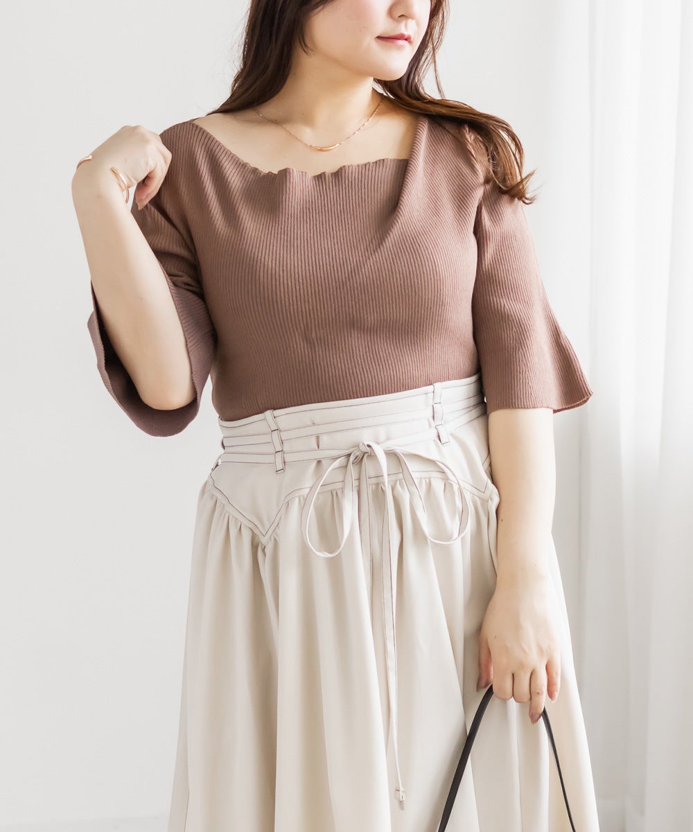 CLETTEオリジナルスクエアネックショルダーリボントップス