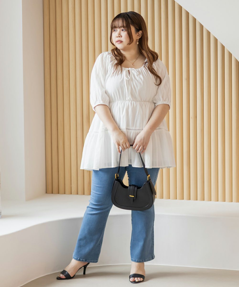 他の画像を見る プラスサイズ 大きいサイズ クレット リボン ドロスト 袖コンシャス 5分袖 6分袖 半袖 フリル衿オフショルブラウス 2025年6月上旬販売価格 ¥ 4,290 ↓ ¥ 1,980 税込 詳細を見る お気に入りに登録する