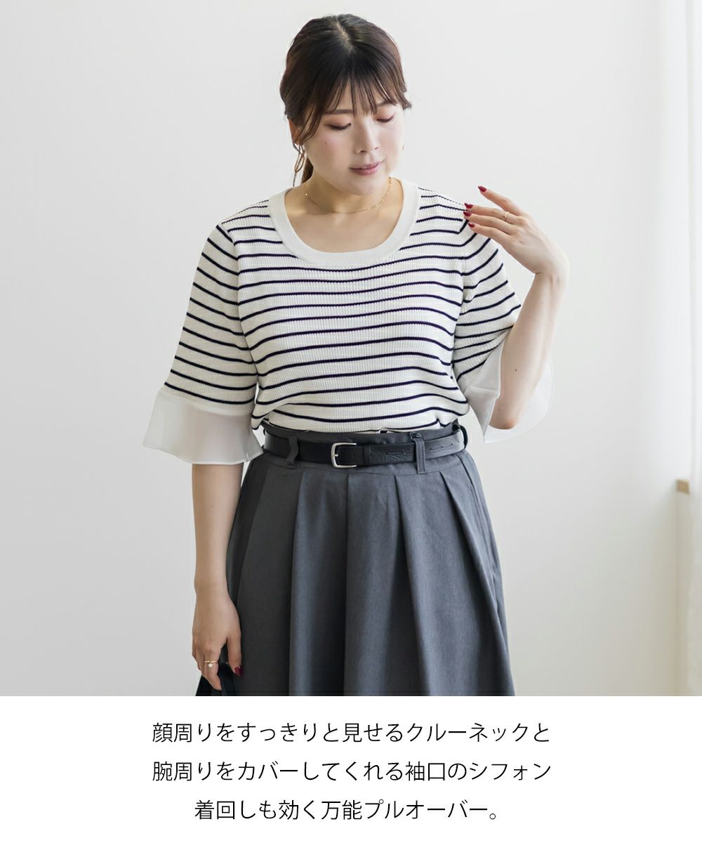 他の画像を見る クレット プラスサイズ 大きいサイズ LL 3L 4L プルオーバー トップス Vネック スクエアネック CLETTEオリジナル★前後2WAYフリルニット 2025年5月下旬販売価格 ¥ 4,950 ↓ ¥ 3,300 税込 詳細を見る お気に入りに登録する